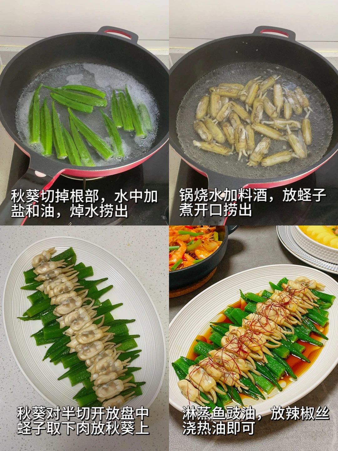❹【白灼秋葵蛏子】