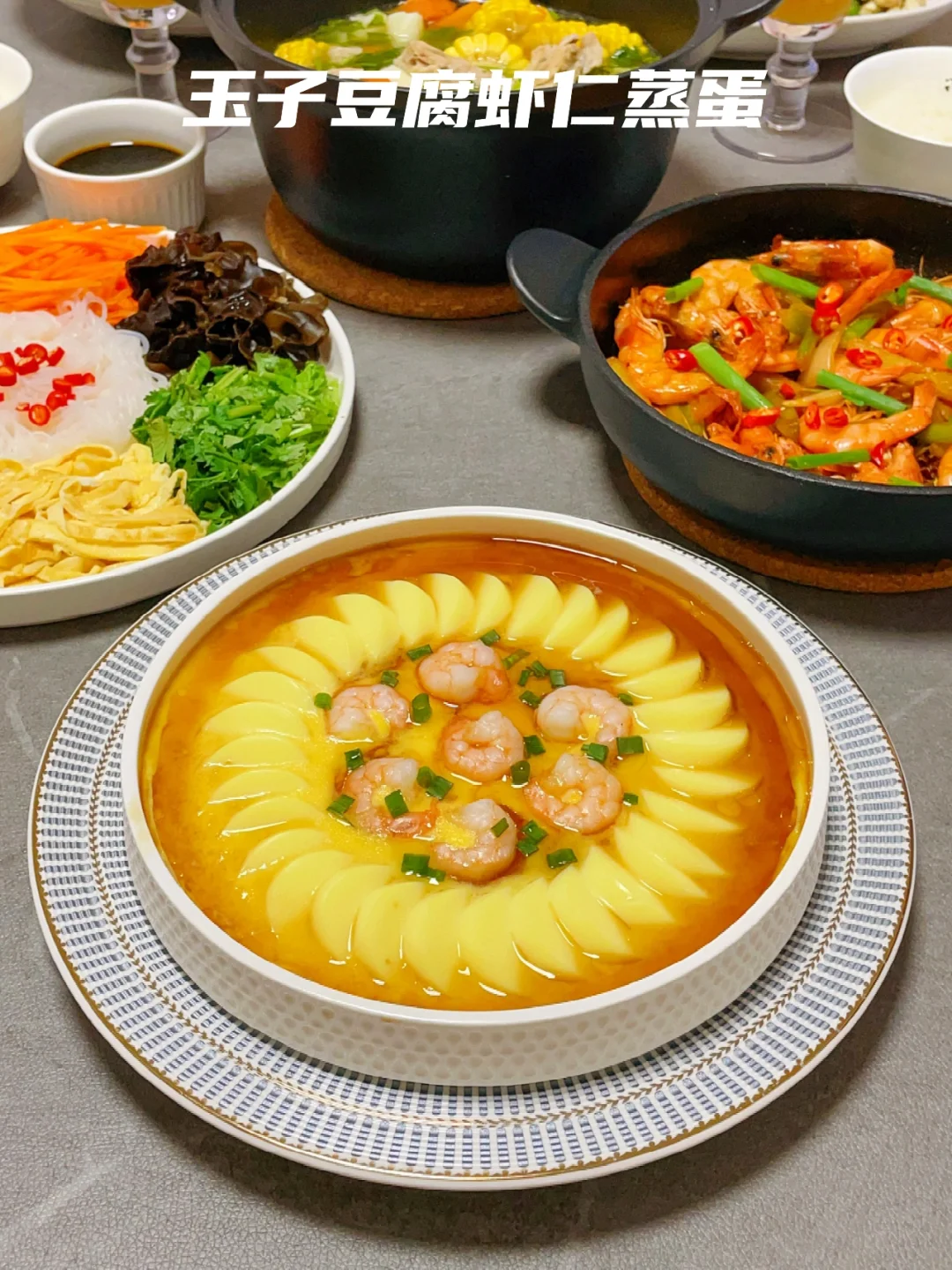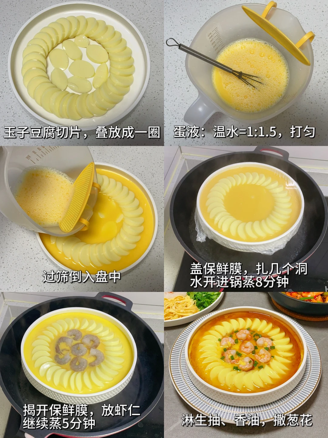 ❺【玉子豆腐虾仁蒸蛋】