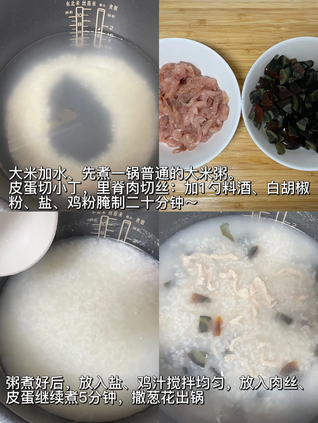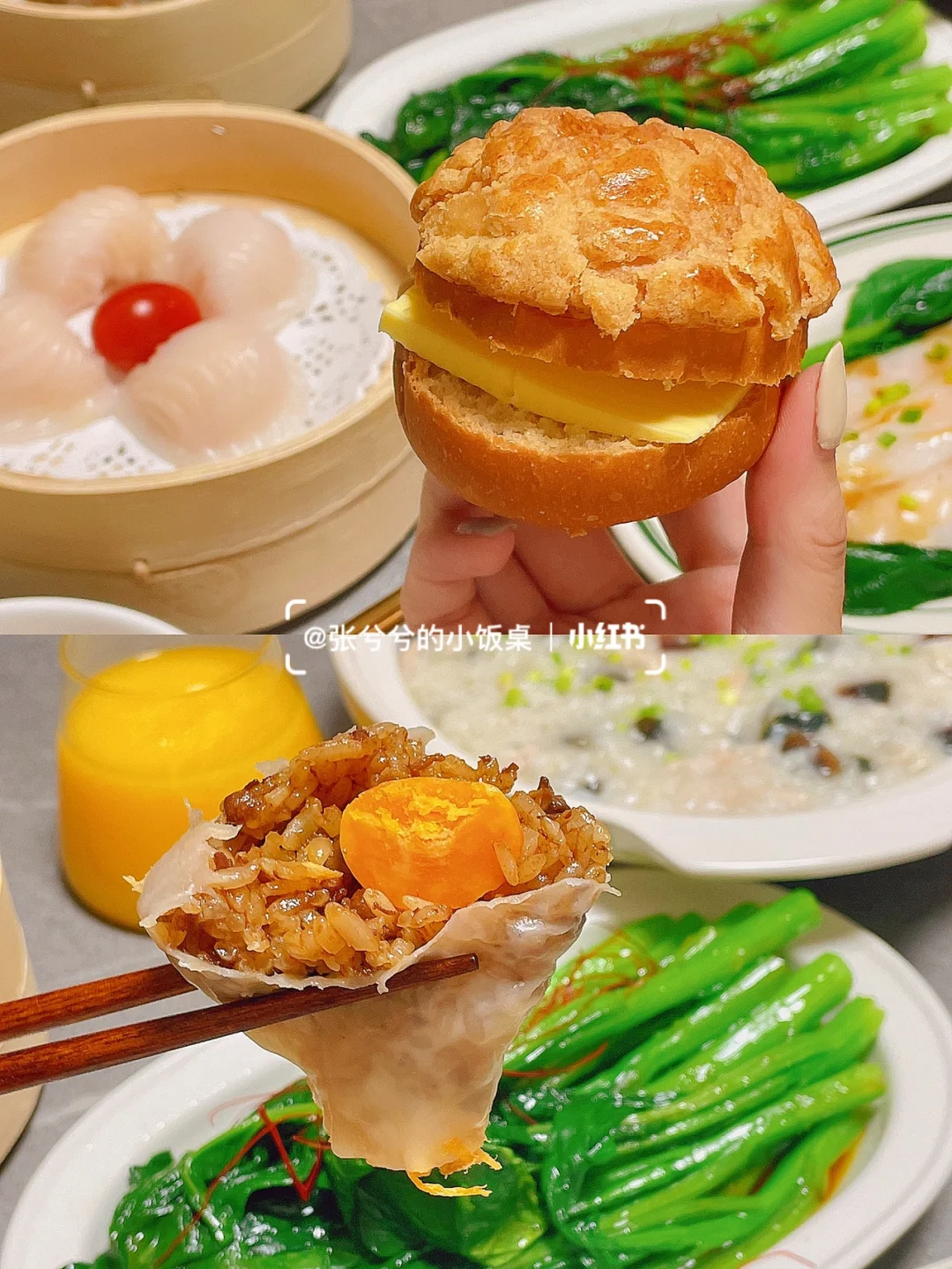 [一R]皮蛋瘦肉粥 立秋了、一锅暖暖的皮蛋瘦肉粥喝完真舒服,做法也非常简单(见图3) [二R]白灼菜心 [三R]鲜虾肠粉 这个是买的广州酒家,但并不太推荐,虾量有点少 [四R]冰火菠萝油 菠萝包出烤箱后,横向划开,黄油切片夹面包里 [五R]水晶虾饺 小霸龙的,冬笋味,这个还不错 [六R]蛋黄糯米鲜肉烧麦 巴比的,这个也不错,个头比较大 🌟今日饮品:芒果汁🥭