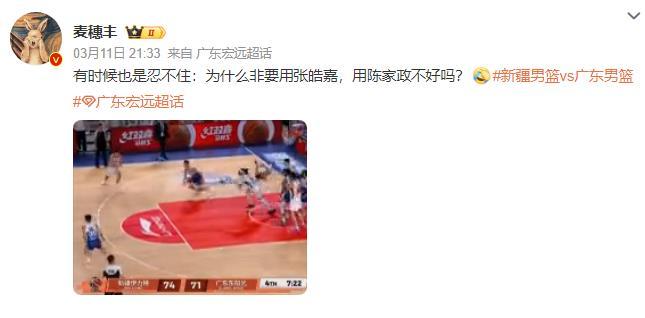 今晚张皓嘉狠狠的打脸了某些人,如果没有张皓嘉的两个关键三分球,广东队大概率今晚还得输。而那个最看不起张皓嘉的麦某也见风使舵了,看到张皓嘉有好的表现后,居然拉屎往回坐了,又开始否定自己的观点了,这真是太符合他的一贯作风了。