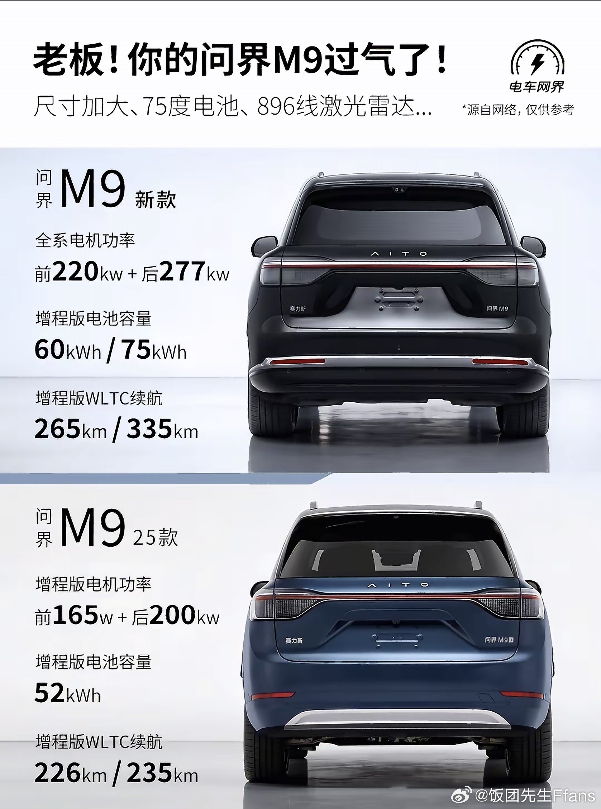 新款问界M9尾部的调整我觉得非常好灯组轮廓偏向M8的风格,更方正更有棱角。上下两