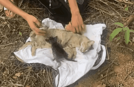 太可怜了!这天一位小哥哥去干活,当他走到一个木头堆的时候,看到了无比凄惨的一幕,一只可怜的流浪猫妈妈被一根木头压住了,旁边还有两只小奶猫一直在哀嚎,似乎在求救。 善良的小哥哥看到这一幕,顿时心生怜悯之心,于是赶紧跑过去把你猫妈妈挪开了压在它身上的木头,却发现猫妈妈已经失去了呼吸,而小猫们似乎并不知道妈妈已经走了,还围在它的身边拼命想要让妈妈醒来。 最终小哥哥把它们安葬在了附近的草地里,希望它能入土为安,而小猫们则一直看着妈妈被安葬,估计是在以自己的方式送妈妈最后一程。之后小哥哥就收养了这几只失去妈妈的可怜小猫。