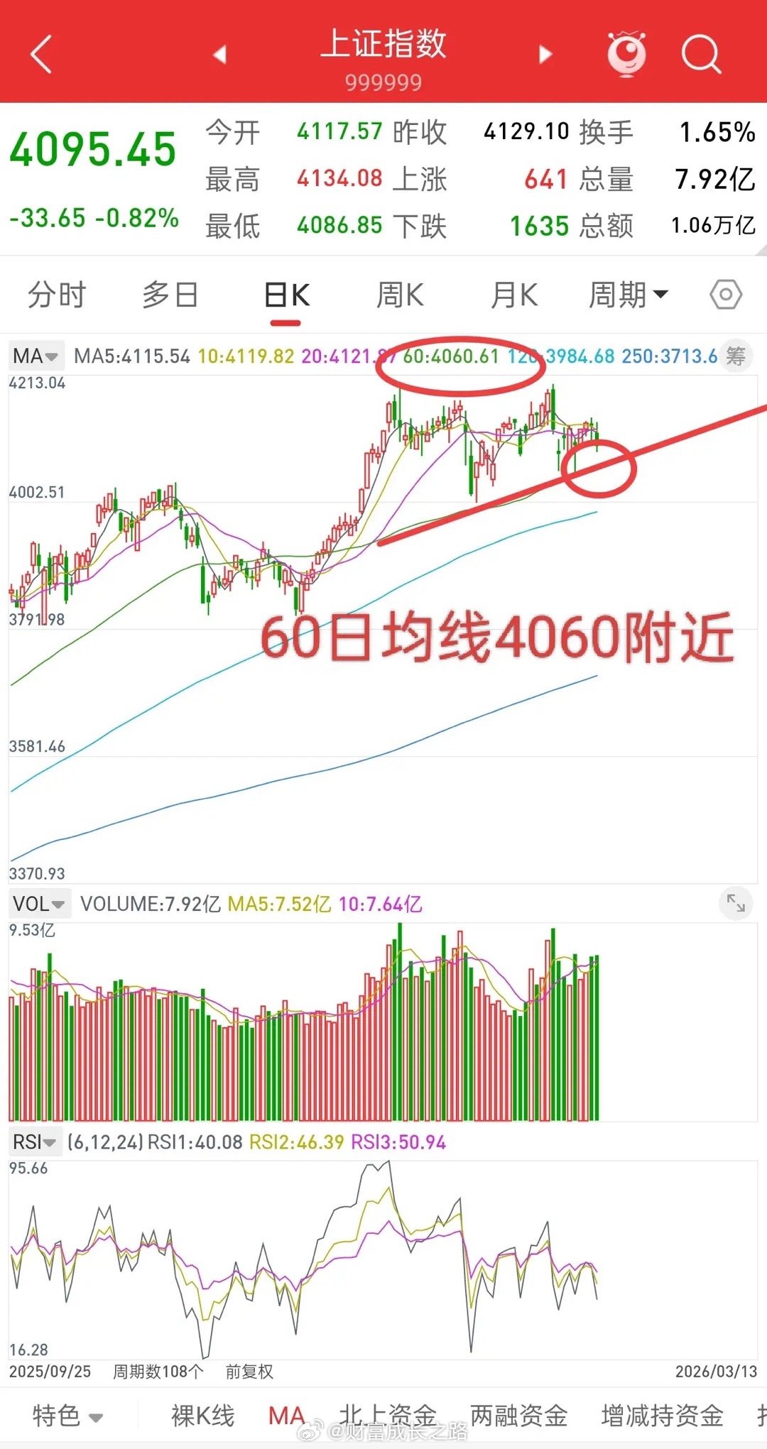 先说观点,从技术形态上来看,大盘下方支撑五月均线4050附近,60日均线支撑4060附近,这些都是关键支撑,包括下方前顶4025左右,再往下还有3985前顶,3936颈线,大盘越往下支撑越强。