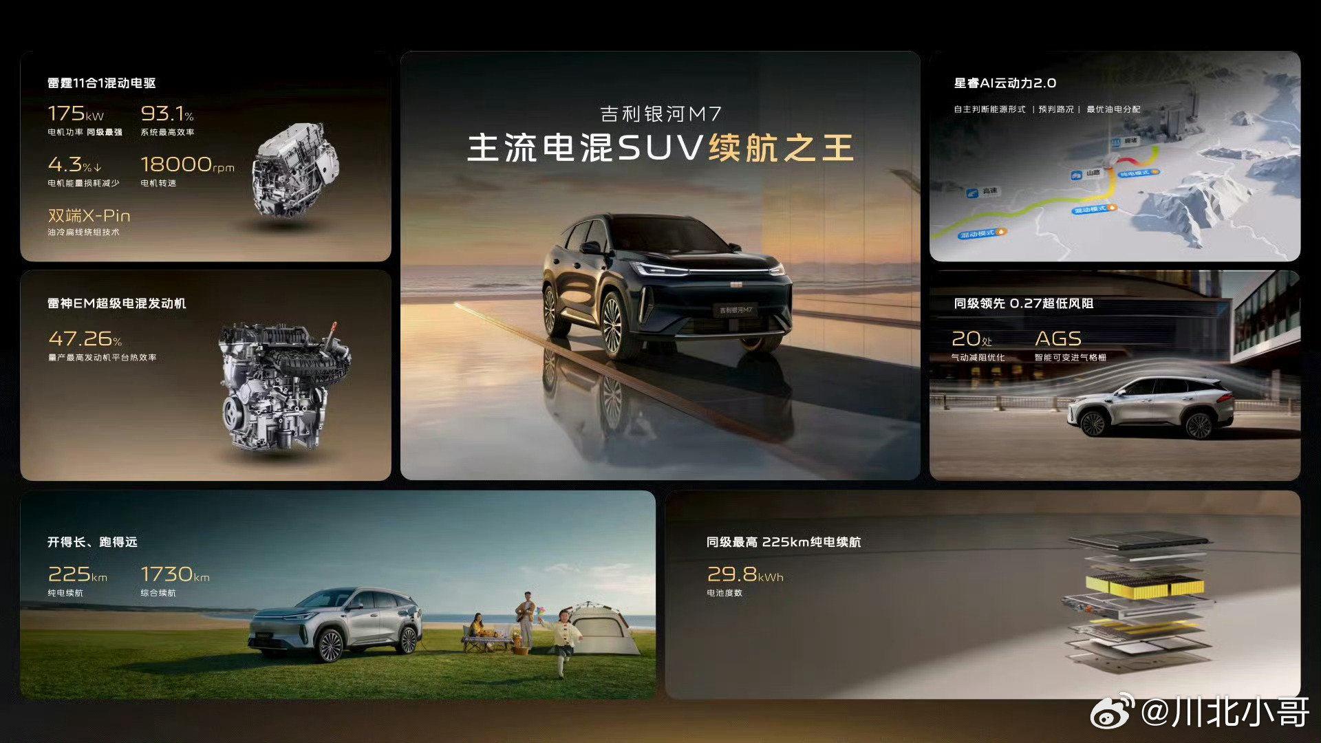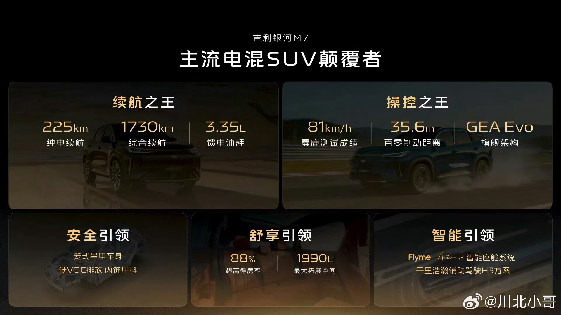 吉利银河M系新成员来了 衢州基地亮相,吉利银河M7震撼登场!首发搭载神盾金砖电池,以硬核实力重新定义家用电混SUV。纯电续航最高225km,日常通勤零油耗更省心;麋鹿测试81km/h,操控稳健、出行更安心;满油满电综合续航1730km,长途自驾告别里程焦虑。三大王牌性能直击用车痛点,安全、续航、操控全面拉满同级第一梯队。未来神盾金砖电池将下放至多款主力车型,吉利银河全面迈入长续航时代,给用户更实在、更放心的出行选择。吉利银河迈入长续航时代