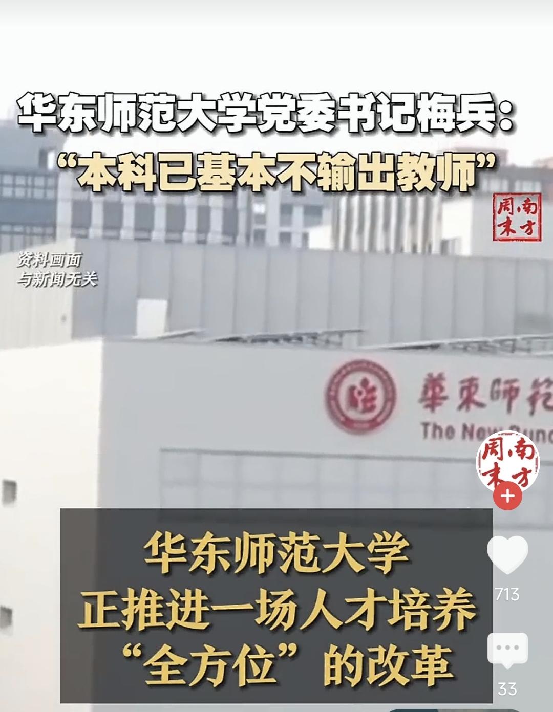 师范本科教师即将下架?华东师范大学官宣本科已基本不输出教师,就是说,输出的教师基本是研究生毕业,对于重点师范大学而言,是不是意味着师范本科教师即将下架? 其实我看到这样的消息,一点都不惊讶。我们学校是一所普通的初中,近几年来招教师的门槛就是研究生,而且在一段时间还追求综合大学名牌大学的研究生。近两年好一点了,师范大学生的比例又上升了。 其实,在不少城市,尤其是一线城市,不少城区招小学教师都要求硕士研究生,而且越来越普遍。高学历的教师当然对教育是有促进作用的,不过也有人质疑,就小学基础教育而言,是否真的要追逐硕士,博士研究生教师? 我的观点是,教师学历研究生化是挡不住的,近些年一些大城市招的本科教师确实越来越少了。但有一点我们也要注意,现在不少年轻老师知识储备是没有问题的,但不少年轻老师对管理学生,与学生的沟通交流,与家长的沟通交流是有很多欠缺的,有些高学历年轻老师当上生源较差的学校的班主任,真的很懵不知道该怎么办,极易与学生和家长发生冲突。 所以师范大学不仅要注重知识的储备,确实还需要教学技巧和管理技巧的储备。如果一一位大学生真的选择了教师这份职业,在大学期间应该给他们开设班级管理,学生管理以及教育沟通技巧,至少有半年完整的实习期,走上讲台管理学生。上世纪90年代,我读师范大学的时候,我们就去一所学校完整的实习了半年,从上课到当班主任,跟一线老师学到了很多东西,确实为自己的职业发展奠定了基础,后来工作就没那么茫然了。现在的学生更难管,教育环境更复杂,年轻老师的确需要这方面的积累。 教育