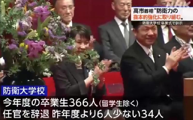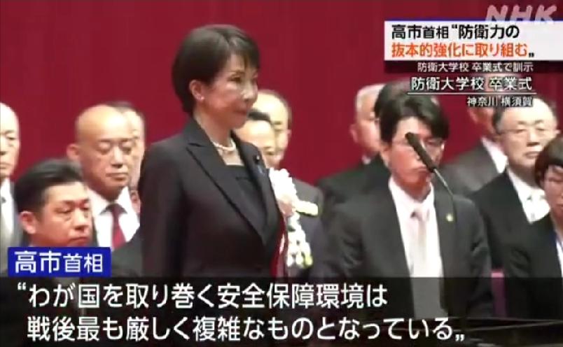 日本首相高市早苗跑到防卫大学放了句狠话:“不排除任何选择”。   当地时间3月14日,日本防卫大学举行毕业典礼。这所学校在日本政治生态中地位极高。历任首相哪怕再忙,也必定会出席。反观那些学术地位更高的顶尖学府,却根本享受不到这种特殊待遇。   这种强烈的反差绝非偶然。它赤裸裸地暴露出日本国家重心的严重偏移。重武轻文的背后,是日本政府加速推进国家军事化和右翼化的深层现实。防卫大学的操场,俨然成了政客煽动情绪的秀场。   高市早苗在训词中特意提到了2022年。那正是这批毕业生入学的年份。她刻意渲染,称日本正处于“战后最严峻、最复杂的安全保障环境”。   这种制造外部危机感的方法,是右翼政客的惯用伎俩。   所谓“严峻环境”,不过是为扩军备战找的合法性借口。高市大谈自2022年以来对“自由开放国际秩序”的挑战。   这完全是呼应美西方阵营的外交辞令。她试图强行拔高日本在阵营对抗中的前沿角色。   最危险的信号,隐藏在她对防卫政策的宣示中。高市狂妄地表示,“不排除任何选择,要从根本上强化防卫能力”。   这绝不是一句空洞的口号。这是对日本战后和平宪法核心精神的公然践踏。   日本《和平宪法》第九条白纸黑字写得清清楚楚。日本放弃交战权,不具备集体自卫权。高市所谓的“任何选择”,在法理上已经彻底越界。极右翼的反动性与挑衅性,此刻已经毫无顾忌地写在脸上。   她甚至明确提到,不排除改变防卫省和自卫队的组织形式。暗示日本不仅要采购远程导弹等攻击性武器。他们更图谋将“自卫队”正式升格为“国防军”。   这种组织形式的颠覆性改革,还包藏着另一层祸心。日本正试图在指挥体制上与美军实现更深度的捆绑。   建立统合作战司令部,彻底突破“专守防卫”底线。这是在借美国印太战略之机谋求军事松绑。   高市早苗对台下的毕业生提出了荒谬的要求。她要求这些未来的军官具备“不拘泥于过去常识的灵活想象力”。什么是“过去的常识”?那就是战后和平宪法框架下的防卫克制。   她这是在公然要求自卫队人员打破和平主义的思想束缚。这种洗脑式的训词,意在培养一批敢于突破底线的战争机器。   当一支武装力量不再受制于和平常识,亚太地区的灾难便已埋下伏笔。   日本右翼政客口口声声说要“维护国际秩序”。这简直是天大的笑话。他们真正想做的,是摆脱《波茨坦公告》和《开罗宣言》奠定的战后对日军事限制体系。这是对历史定论的疯狂翻案。   高市早苗的这番狂言,绝非孤立的演讲。这是日本国家战略转型的重要一环。通过对内压制反战声音,她正试图为突破防卫费GDP占比限制铺路。修改和平宪法,才是这出大戏的最终目的。   “不排除任何选择”意味着日本谋求主动对敌基地攻击能力。这种激进的军事正常化,是对二战后国际和平秩序的公然挑衅。   一个试图重走军国主义老路的日本,必将成为亚太地区最大的安全隐患。