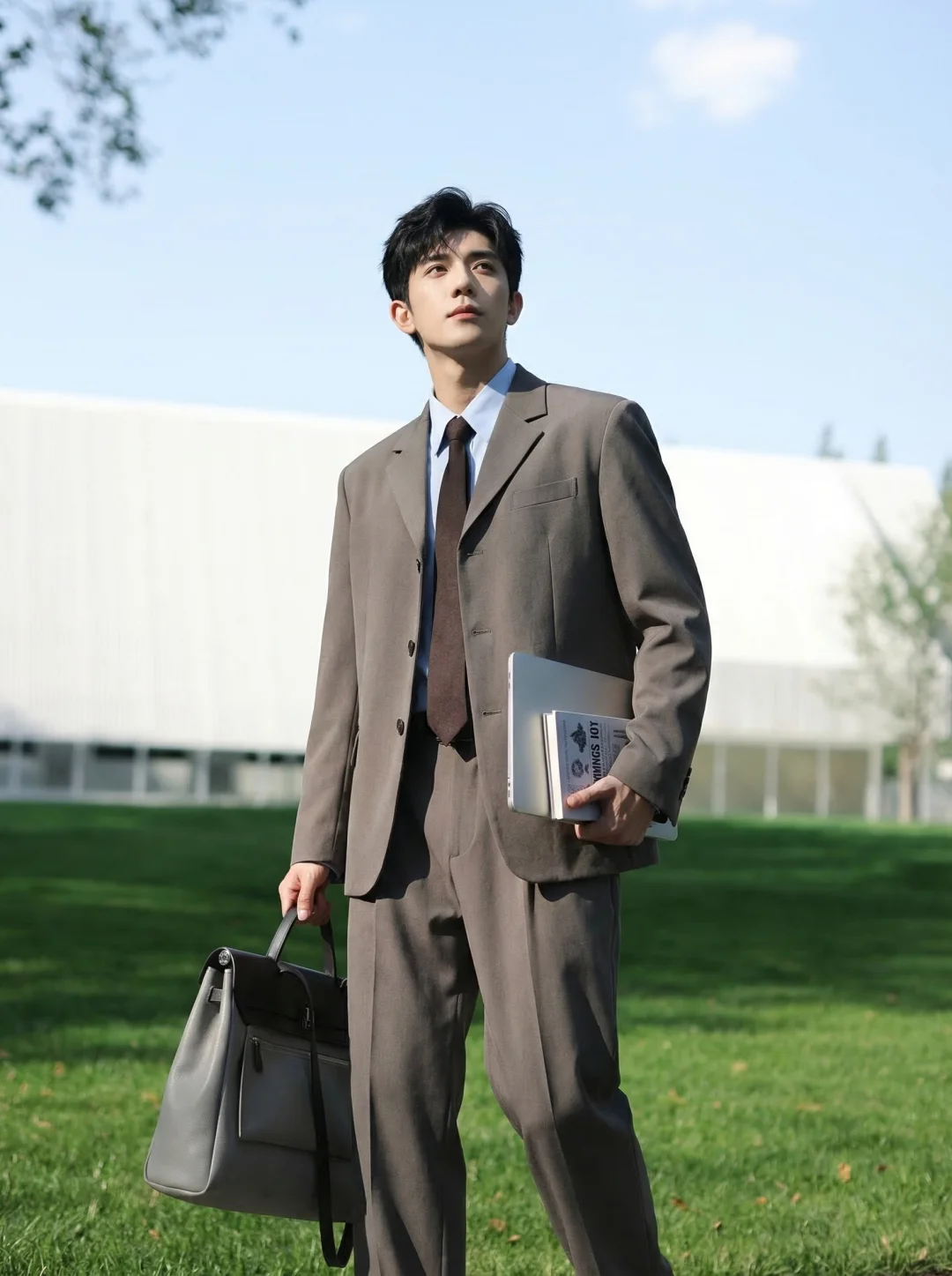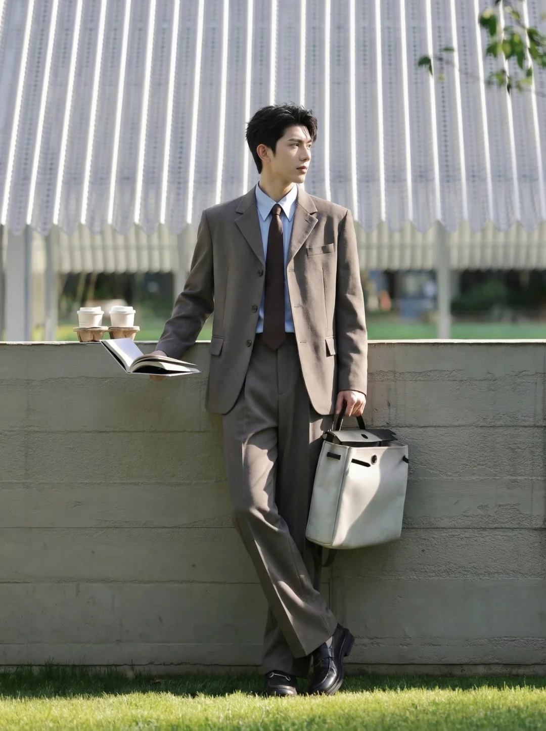 穿搭场景: ✅ 草坪午餐/外勤: 阳光是最好的滤镜,整个人显得干净且从容。 ✅ 商务提案: 蓝衬衫自带的信任感,加上西装的挺拔,专业度拉满。💼