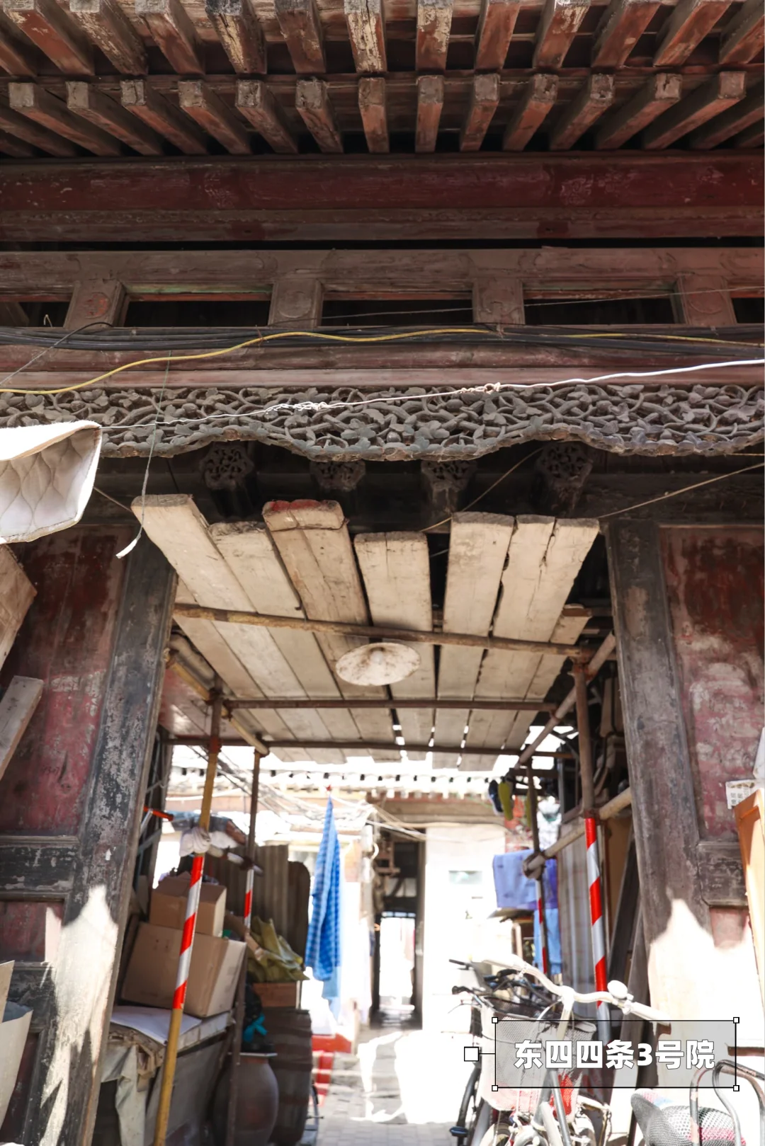 ▪️东四四条3号院(忘记拍门牌号,可能是3号):这是整个东四四条我觉得最特别的一处历史建筑,因为还作为民居,所以可以看到历史建筑与人抱有着最亲密的姿态,现代生活就在斑驳的瓦片上徐徐升起