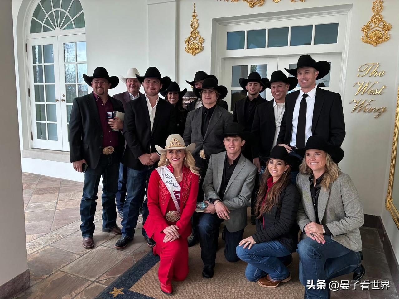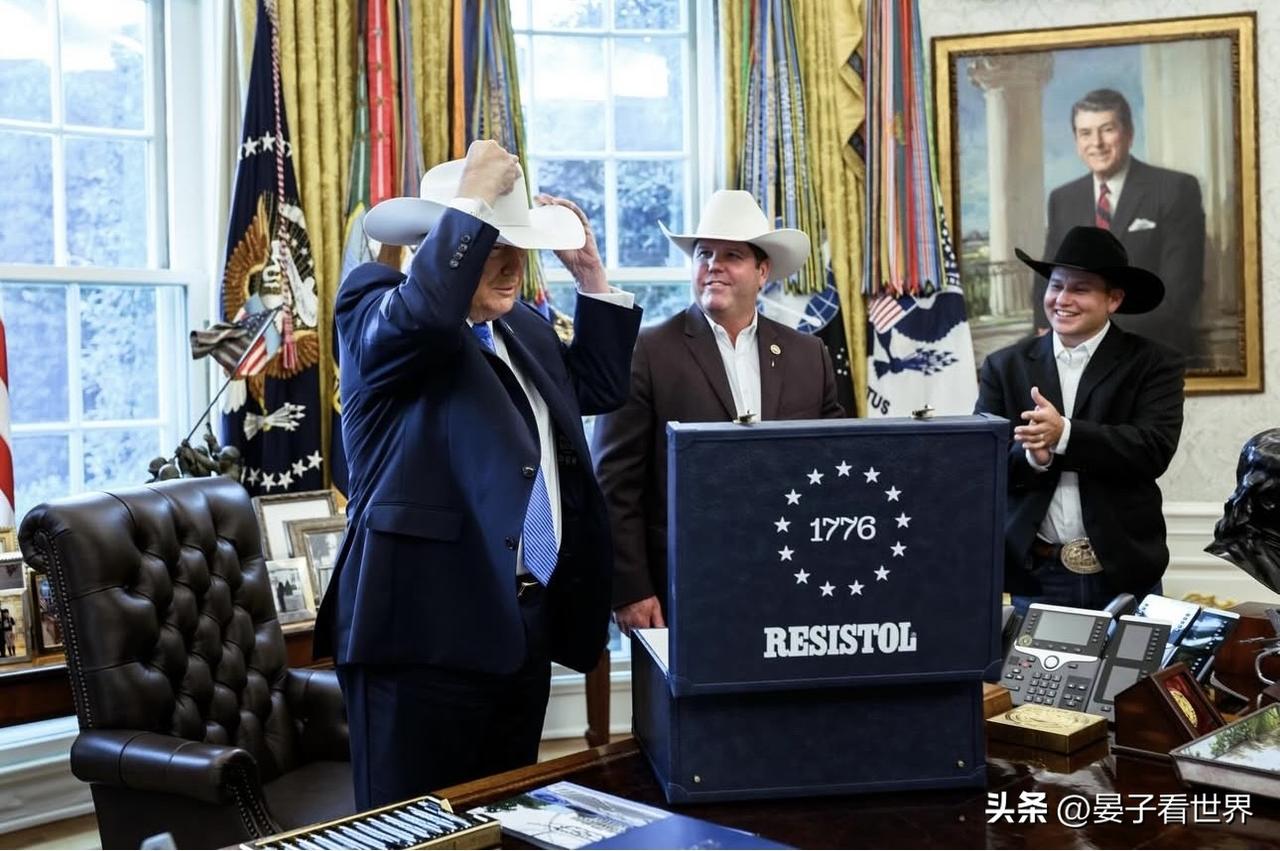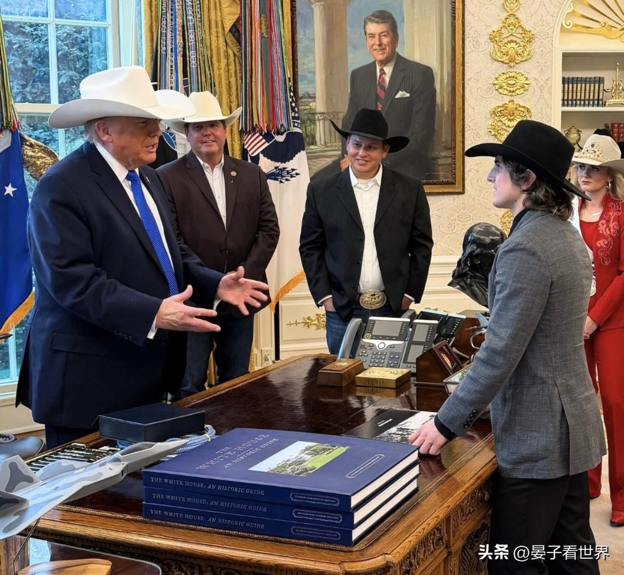 會見世界職業牛仔競技冠軍團隊🏆 President Trump speaks with members of the Rodeo World Champions while wearing the hat they gifted him.