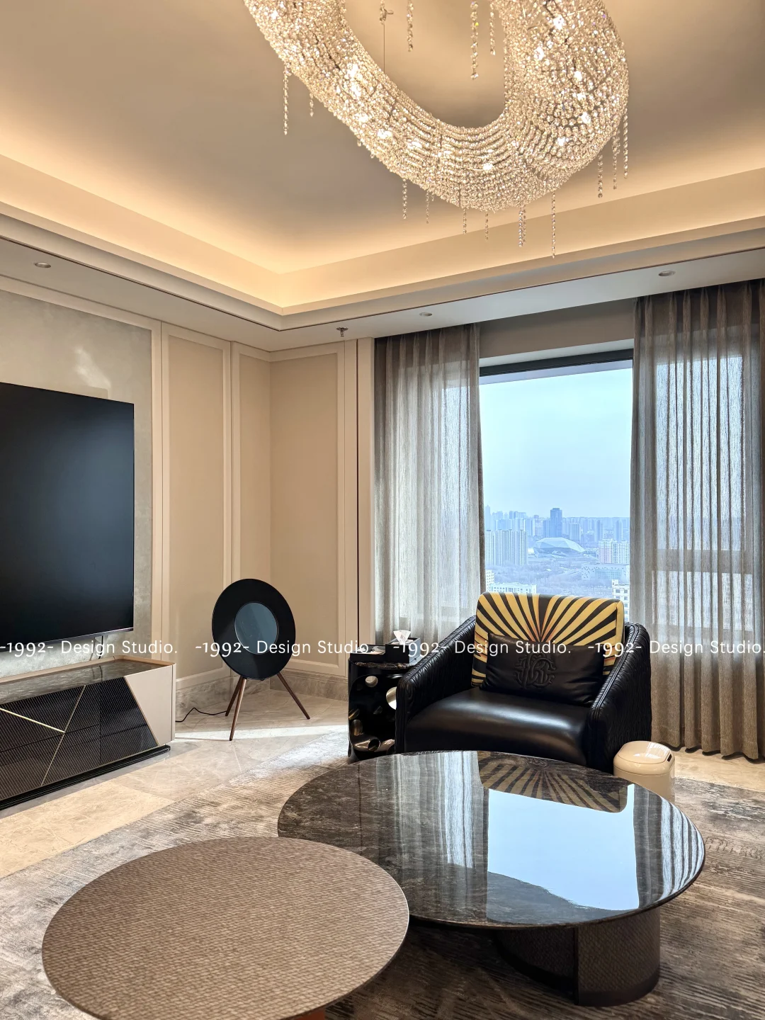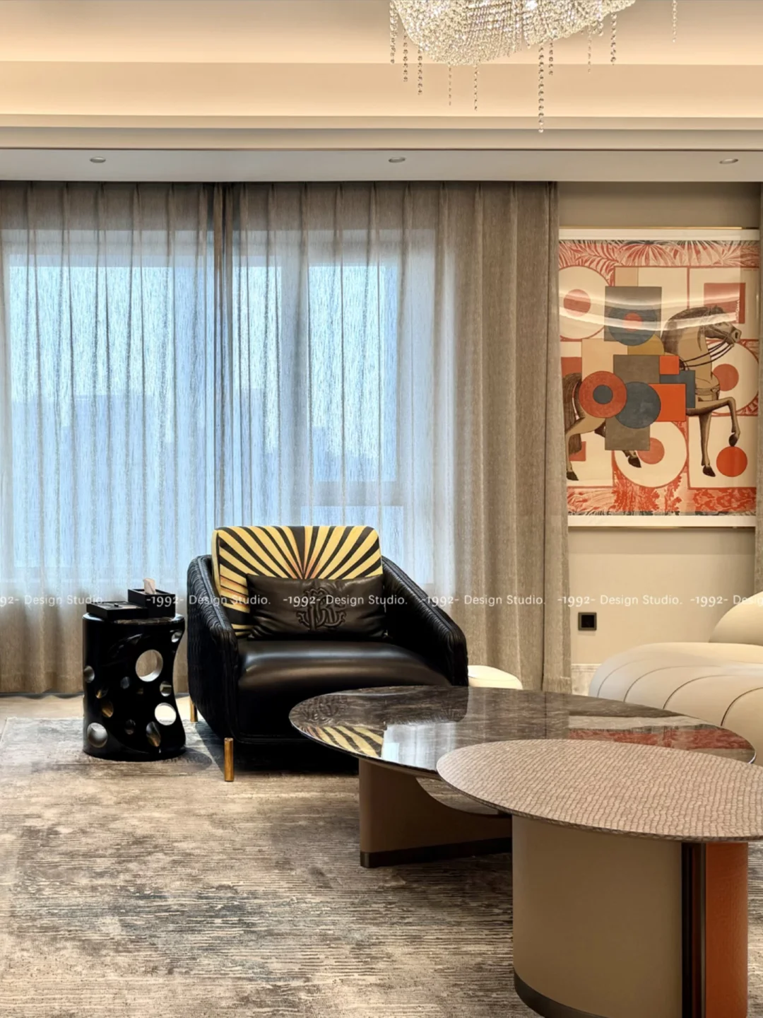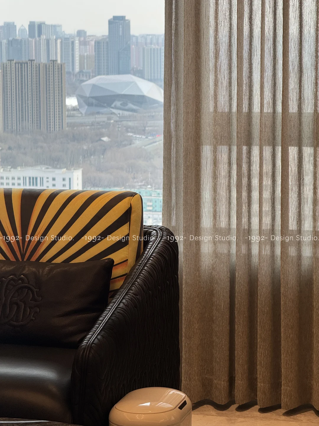 不遮挡阳光,却留住了一室的柔和与松弛感 浅咖色肌理纱,自带高级雾面滤镜 单层也能hold住整个客厅 沈阳·雅颂阁客厅窗帘手机实拍