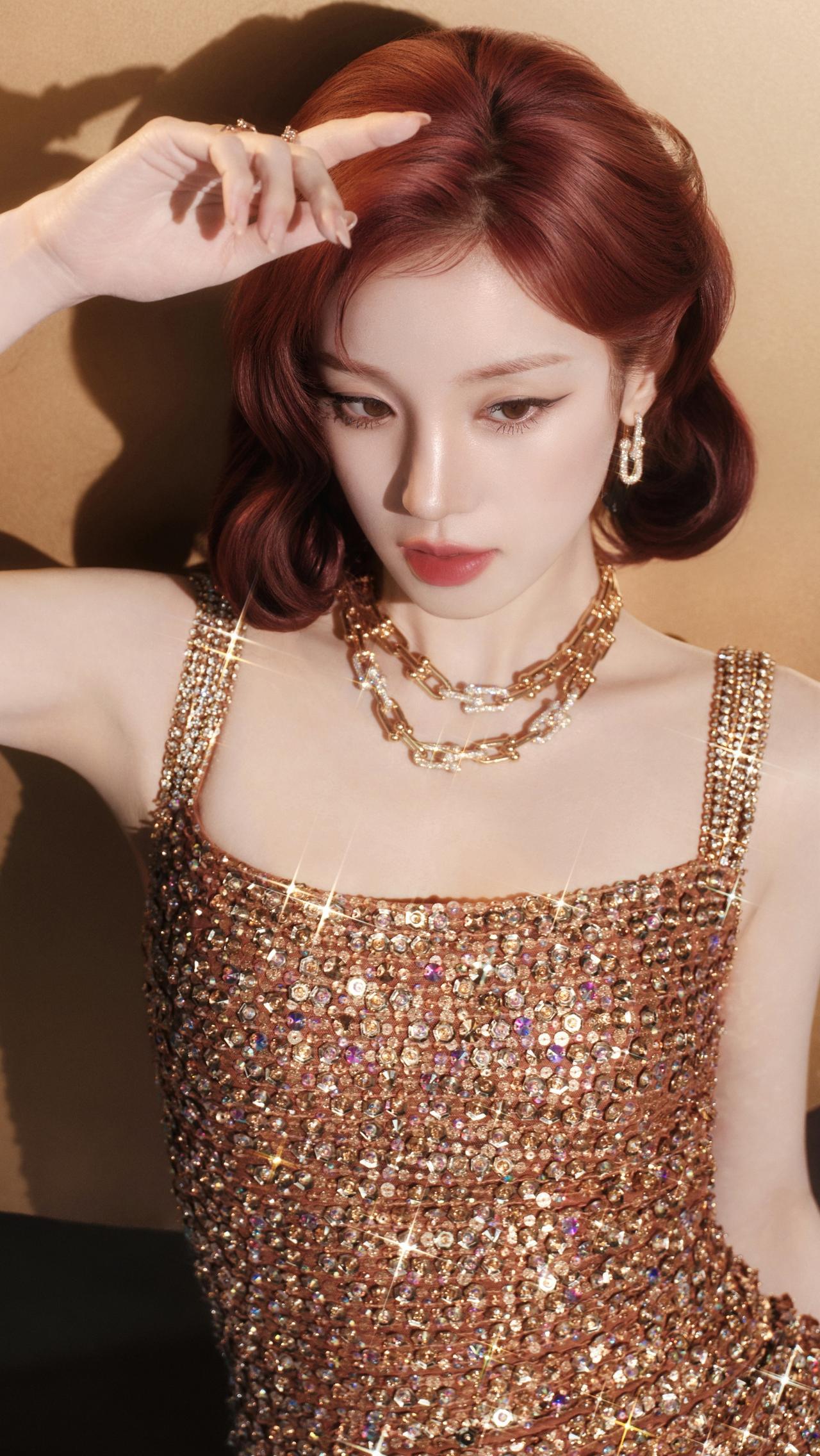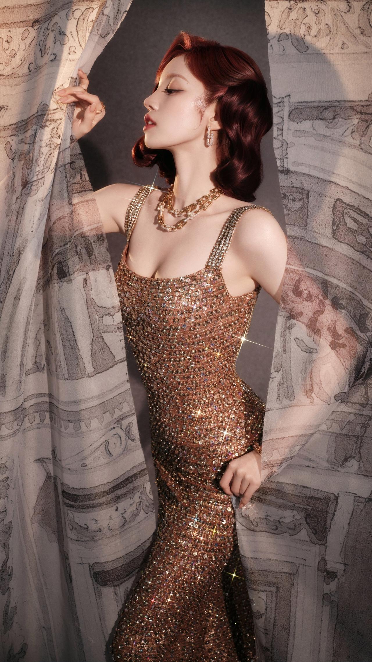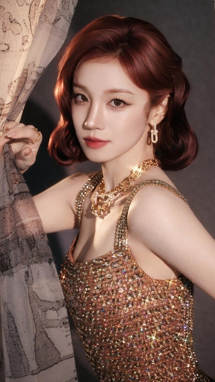 宋雨琦这组鎏金港风造型,直接美到封神!✨ 红棕复古卷发配满钻礼裙,一颦一笑都是