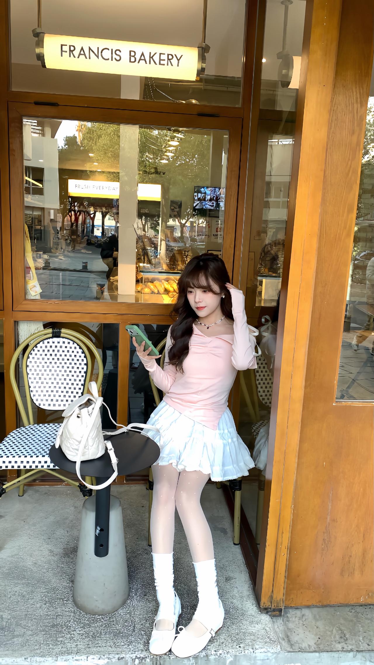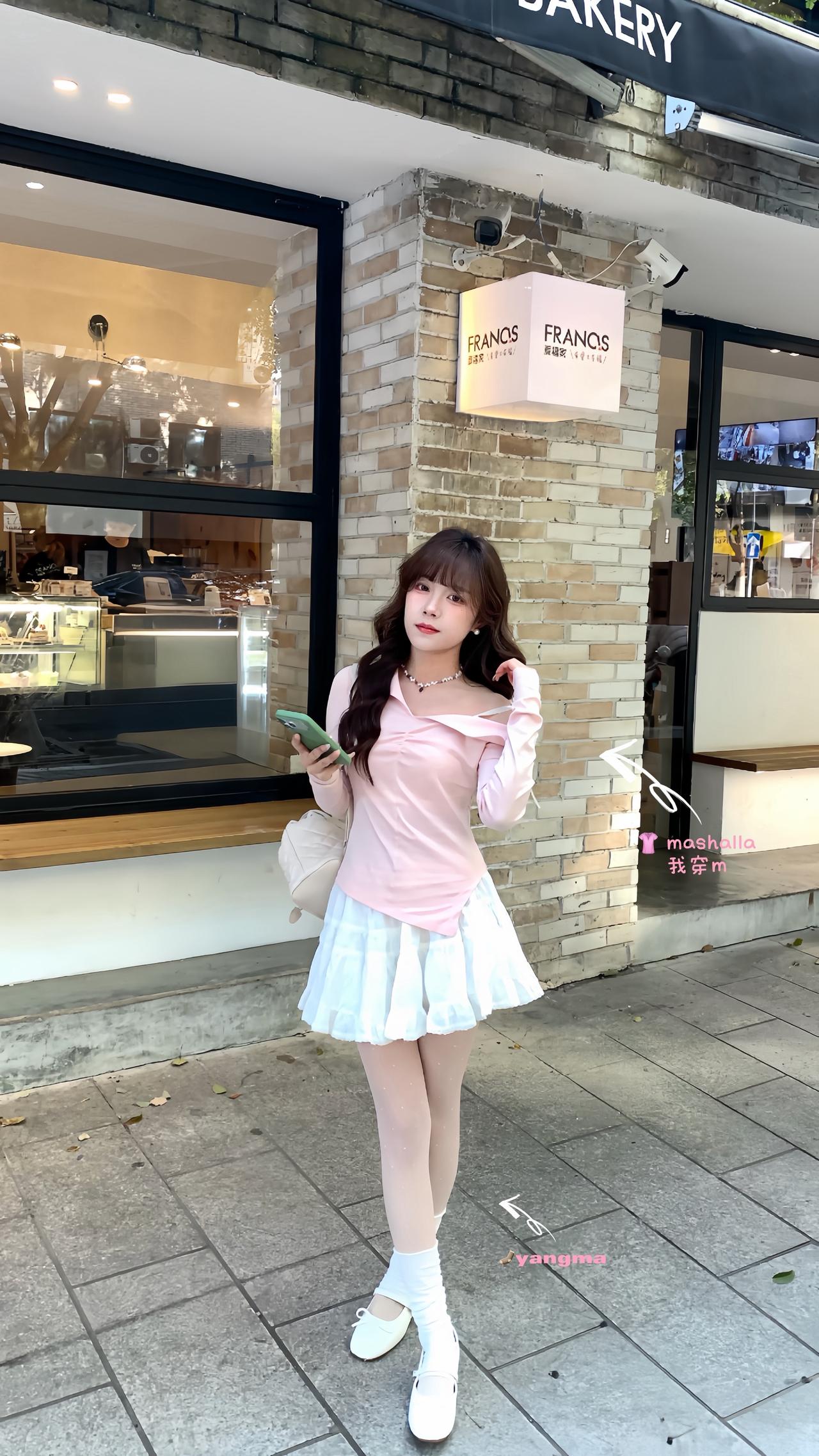 早春穿搭公式:粉色miu系上衣➕白色短裙 甜美风拿捏 ootd穿搭 春天的美只有