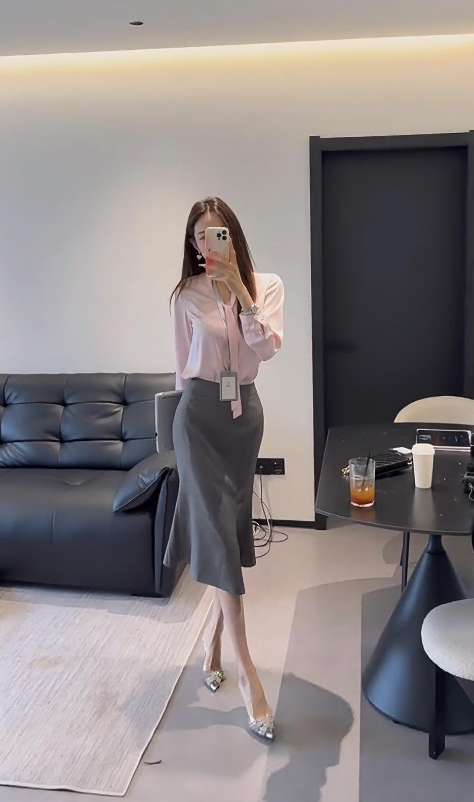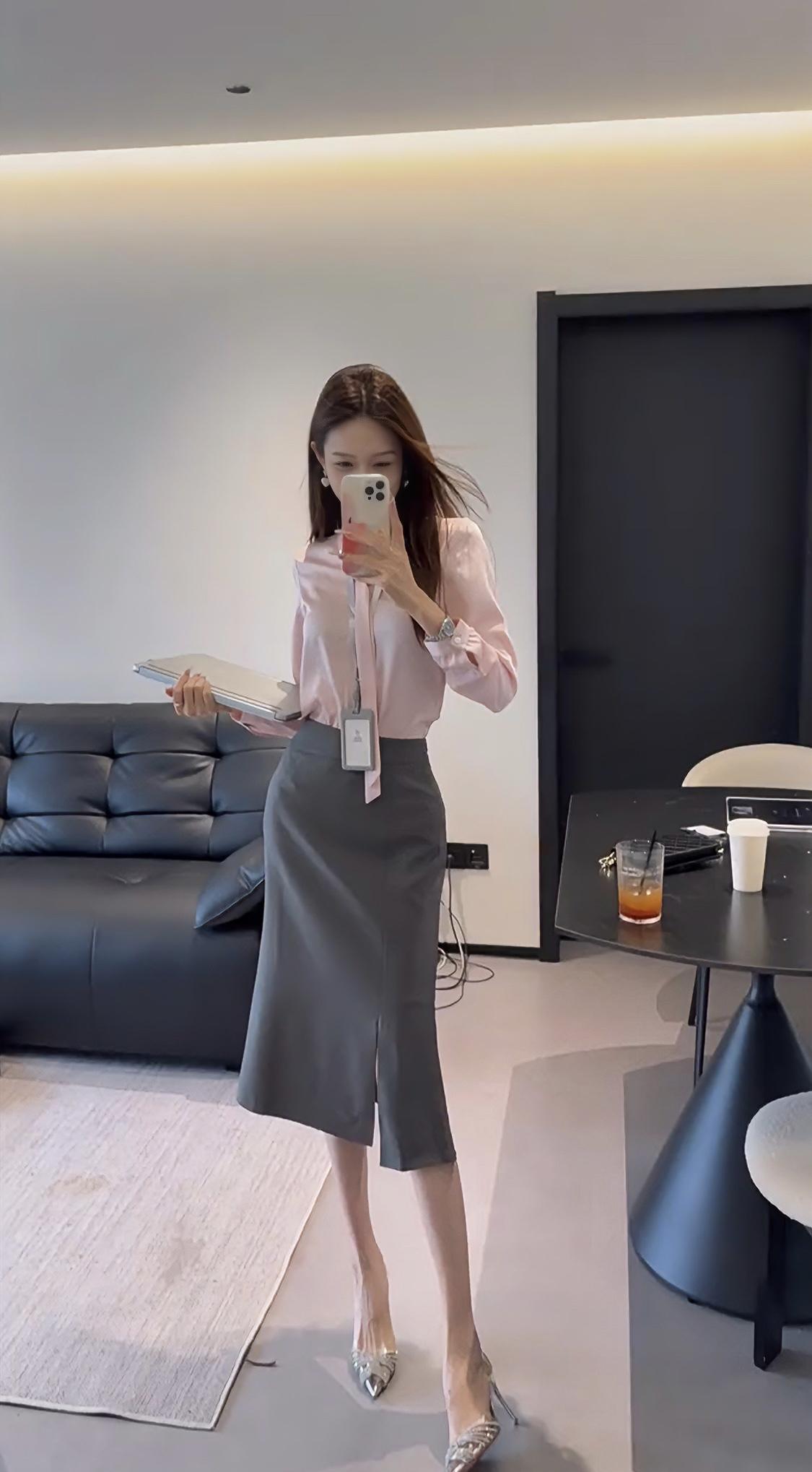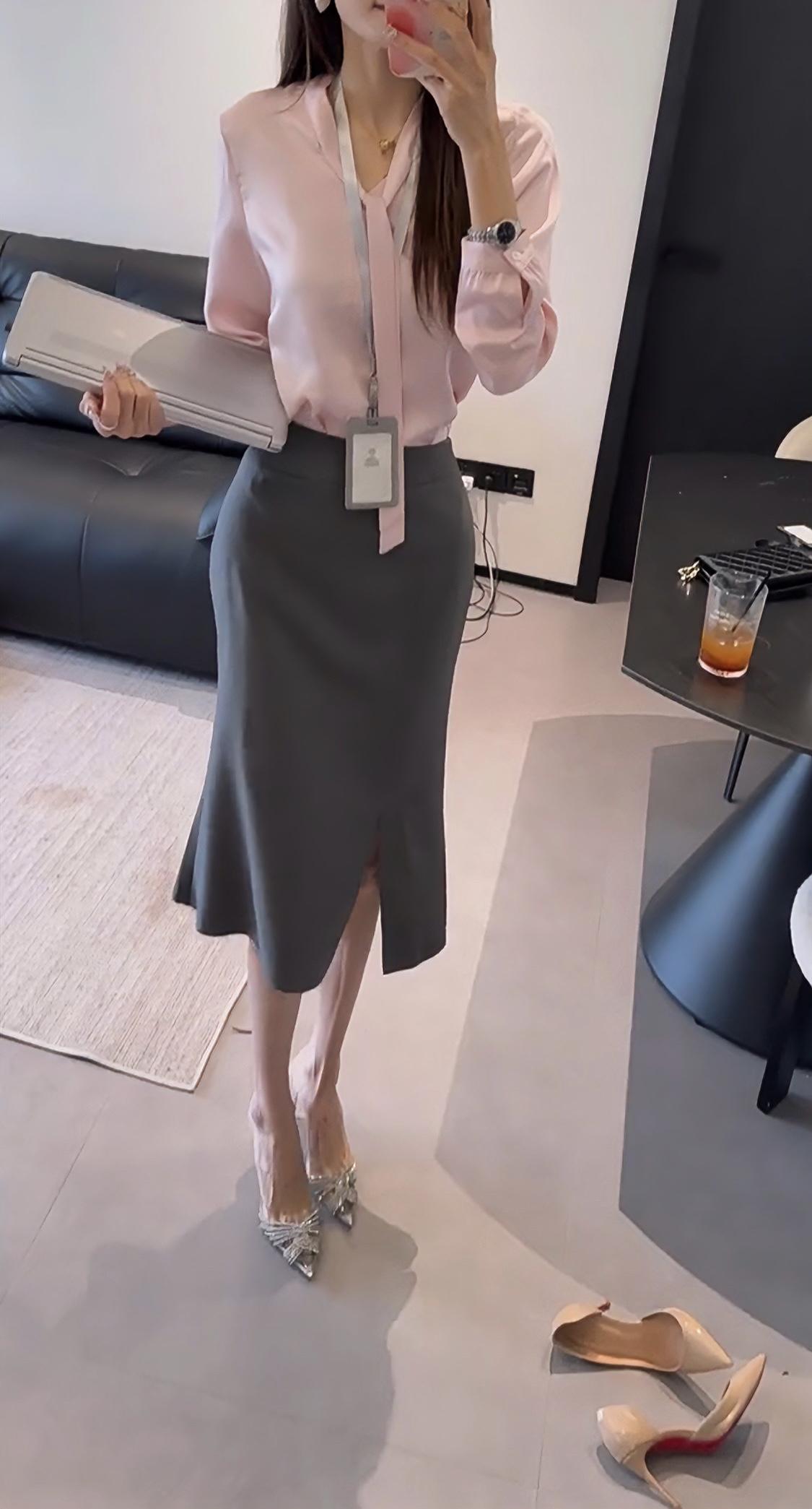 正常穿搭推荐,无不良引导。 今日穿搭推荐整体风格:温柔高级的“粉灰CP”职场轻熟风,打破传统通勤装的沉闷感,兼具专业度与女性柔美气质。 • 上衣:灰调裸粉缎面/仿真丝衬衫。选低饱和的灰调粉(而非高饱和芭比粉),自带柔光滤镜,衬得肤色白皙通透;缎面材质自带细腻光泽,柔软垂坠,既显高级质感,又避免了普通白衬衫的刻板,领口系带设计增添法式慵懒感,微宽松的版型包容身形,不紧绷。 • 下装:中灰色高腰包臀鱼尾半裙。高腰剪裁直接拉高腰线,优化身材比例;包臀版型勾勒腰臀曲线,鱼尾开叉设计弱化包臀裙的紧身感,走路更灵动,中灰色沉稳压场,中和粉色的甜腻,让整体风格更显知性稳重。 • 鞋履:银色尖头细跟鞋。金属银色提亮整体造型,打破粉灰的柔和感,增添利落气场;尖头设计延伸腿部线条,细跟提升精致度,适配职场正式感,日常也能驾驭。 • 配饰:简约金属耳饰+细项链,小巧的金属配饰呼应鞋履的金属质感,提升精致度,细节拉满。 超适配场合 1. 职场通勤/正式商务:日常上班、部门会议、客户拜访、商务洽谈等场景。粉灰配色专业又不失亲和力,缎面衬衫+灰色半裙的组合既符合职场着装规范,又能打破黑白灰的沉闷,给人“干练且有审美”的专业印象;尖头高跟鞋提升气场,适合需要展现专业度的正式场合。 2. 轻社交/休闲:职场下午茶、同事聚餐:粉灰配色柔和,缎面材质的光泽感自带氛围感,比普通通勤装更显精致,适合轻松的社交场合。 约会时搭配平底乐福鞋或裸色单鞋,可弱化职场感,打造温柔浪漫的轻熟风约会造型,适配餐厅约会、文艺市集等场景。 品牌探店/日常出街:这套穿搭色彩和谐、质感高级,拍照出片率高,适合作为日常出街、探店的造型,兼顾舒适与时髦。 穿搭微调技巧: 正式度升级:外搭浅灰色西装外套,强化职场专业感,适合重要商务会议。 休闲度降级:换白色乐福鞋/裸色平底单鞋,解开衬衫领口一颗扣子,弱化正式感,适配周末逛街。
