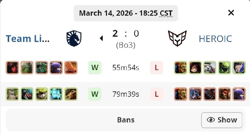 PGL淘汰赛,不配赢的Heroic 第一局李逵优势,但是Heroic大哥无解肥,并且通过几次团战切入追回劣势,并且还有小优,但是后面团战又送回去了。 第二局前期Heroic巨大优势,并且先破两路,但是第三路一直不敢上,已经好几个肉山盾,最后被李逵拖到后期装备成型再也打不过了,被翻盘成功。这个队伍经常前面确定大优势,但是经常就是几次团战就送回去了,太不配赢了。