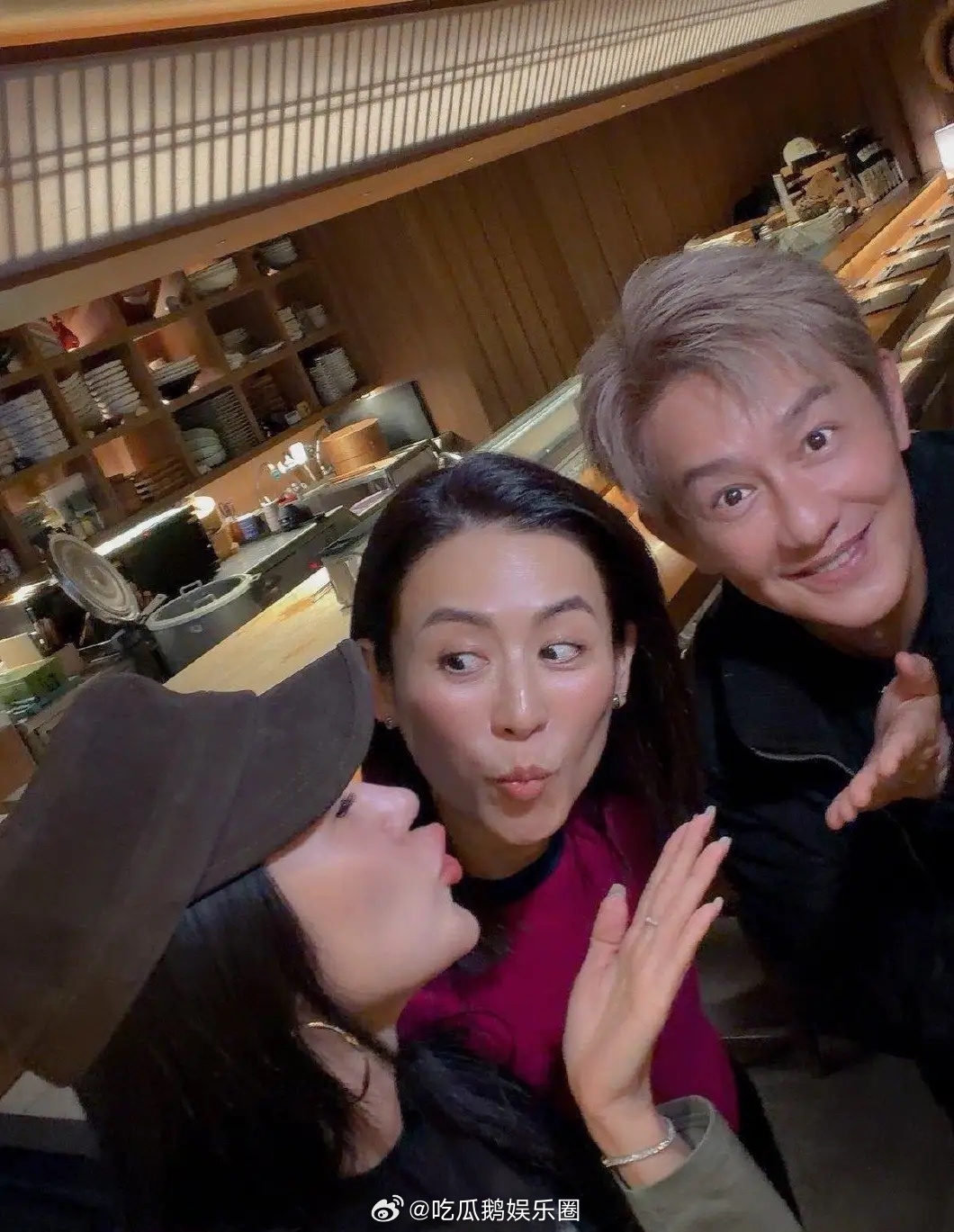 宣萱和陈浩民夫妇在香港聚会吃饭,她的气质太好了,脸部保养得宜,看不到一点皱纹,头