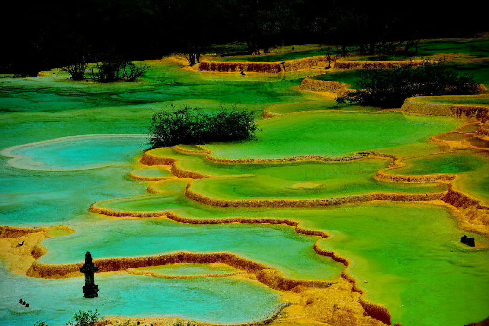 人间瑶池·黄龙,以彩池,雪山,峡谷,森林“四绝”著称于世。