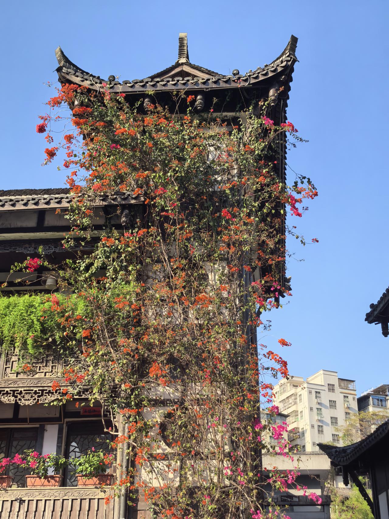 晒晒随手拍的花甘坑客家小镇的三角梅五彩缤纷,值得一看。