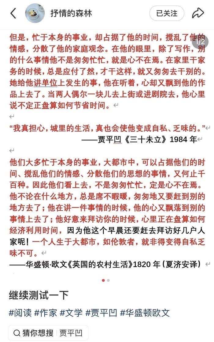 文坛偶像正在批量倒掉!一个人,单挑大半个文坛? 你敢信吗?86岁的老作家,厨房里写了8公斤手稿,把全网都感动哭了的“素人奶奶”杨本芬,竟然道歉了! 杨本芬之所以道歉,不是因为自己的书卖得不好或写的不好,而是因为抄了余华、王朔、霍达的句子 。 这可不是什么小打小闹。过去一年多,有个狠人叫“抒情的森林”,他就像一个行走的查重软件,已经让超过38位作家“翻车”了 。 从贾平凹到蒋方舟,从李碧华到莫言的弟子,名单拉出来能吓死人。这些人可不简单,名气都不小,在文坛甚至颇有影响力 。 最离谱的是贾平凹老师。他1984年写的那篇《三十未立》,里头那些“忙于本身的事业”、“性格的浮面”这些词儿,居然跟人家美国作家1820年写的《英国的农村生活》长得一模一样,简直是穿越时空的“心有灵犀” 。 还有写《霸王别姬》的李碧华,那可是港圈“文坛妖姬”啊,照样被扒出跟茅盾、钱钟书的文字“异曲同工” 。 事情闹大了,除了杨本芬奶奶出来说了句“哪怕一句也不行,我错了”,剩下的清一色玩起了隐身 。贾平凹不吭声,蒋方舟忙着删帖 。 有人说这博主是“文学警察”,也有人骂他“蹭热度”。但我觉得他有一句话特扎心:“不要把抄袭变成一个被法律垄断的词。” 当那些我们捧着读的金句,原来是别人家的“二手货”,这读的到底是书,还是作家的“摘抄本”?