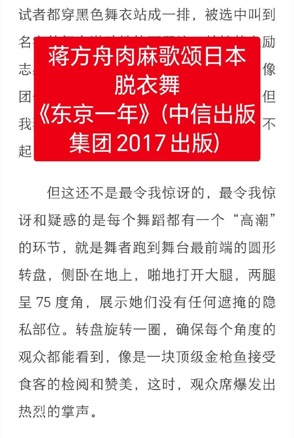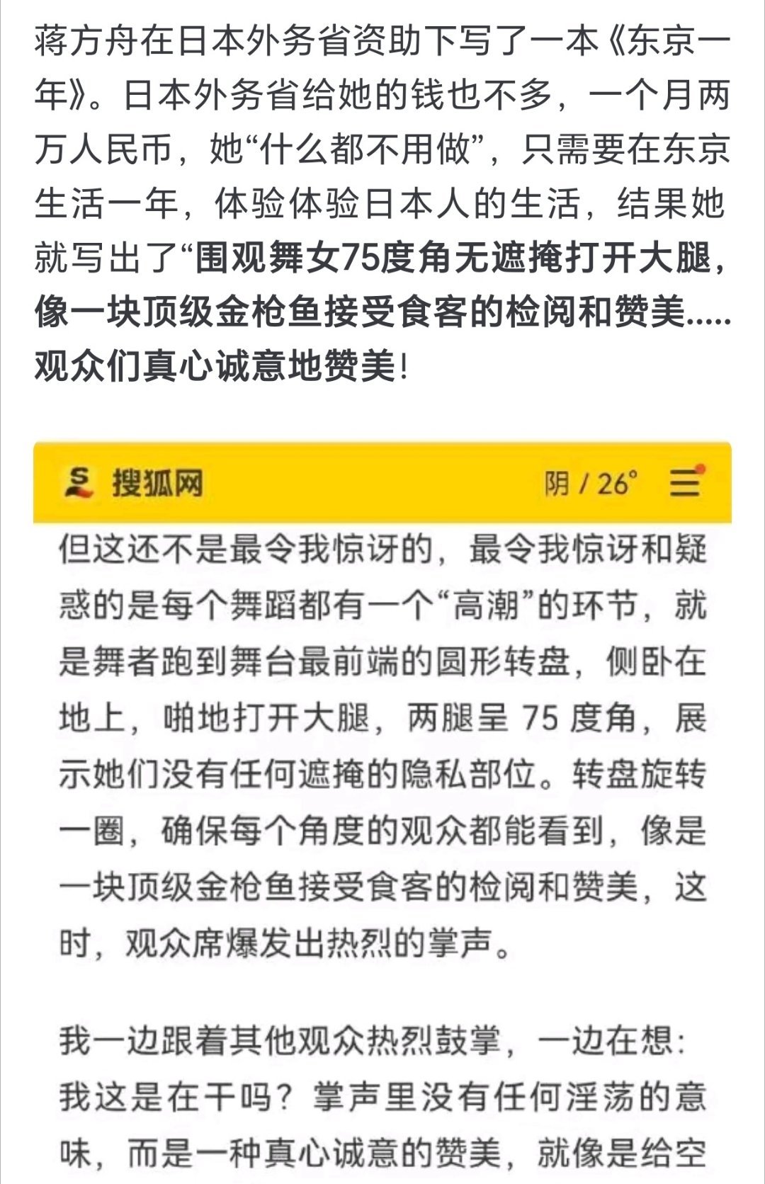 再回顾:蒋方舟得到日本外务省的资助后,歌颂日本色情业实在是辣眼睛。博主再指蒋方舟