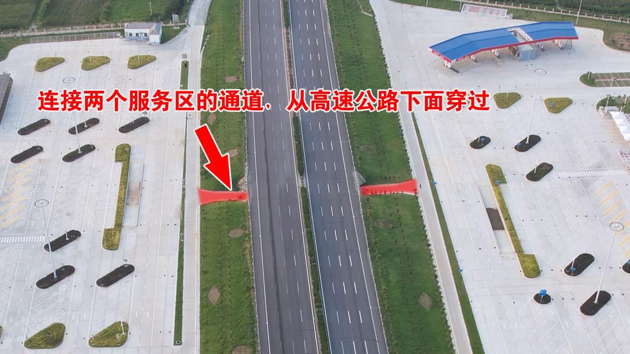看了这几个图你应该就知道了,高速公路两边对称出现的服务区,其实是互通的。 不过你要是认为,既然互通,那从这里调头应该没问题。真要是这么想,那你就是想多了。 两个对称出现的高速服区,中间的通道一般有三种用途。一是服务区员工通勤,二是服务区物资运输,三是应对紧急情况。 也就是说,高速公路对称的两个服务区通常会通过汉达下穿涵洞或高架的方式进行连接,但这条通道通常并不向社会开放。 车主如果未经许可擅自闯卡通过该通道,有可能会受到交管部门的处罚。