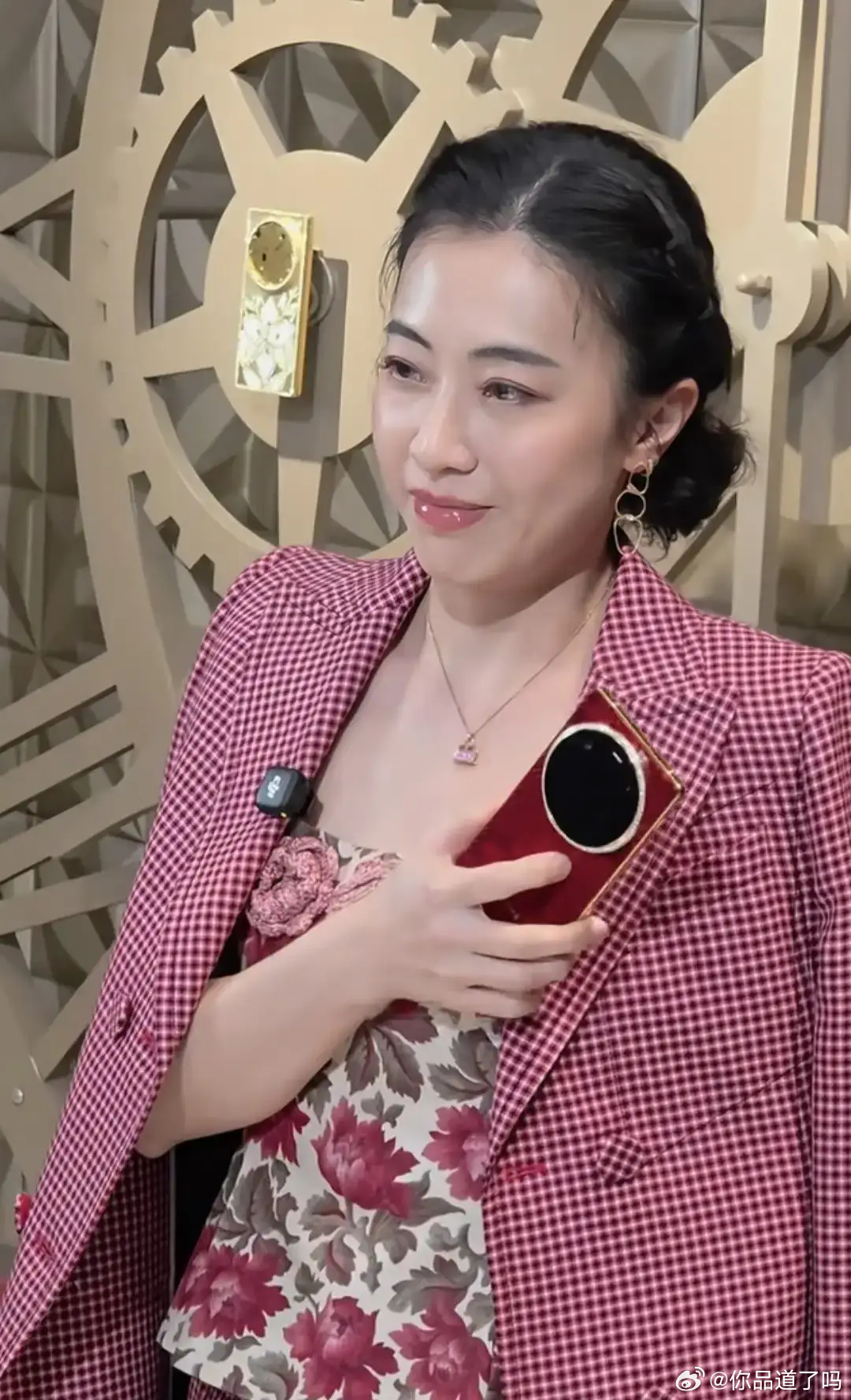 原来富婆甘比和女微商一样,都喜欢把外套披在身上。不过微商女性比她自信多了,甘比气