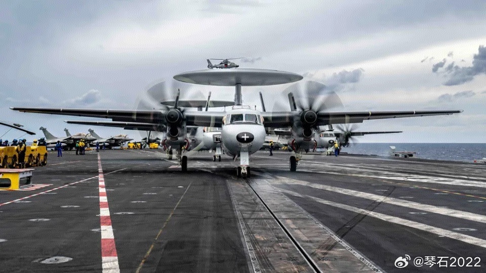 法🐔嘚瑟它的预警机戴高乐展示航母配备的3架E2C。当初为了这预警机,戴高乐也是闹了个大笑话。明明设计的时候考虑到E2C的使用要求,首次海试居然发现甲板短了经过多年使用和战术需求,法海军20亿美元已采购3架最新型E2D预警机,将于2028年到货。E2D更新了航电数据链和卫星通讯系统、更换了发动机、加强了空中加油能力、将雷达更换为机相扫结合的AN/APY-9雷达,可以有效满足法国海军未来的预警指挥需求。