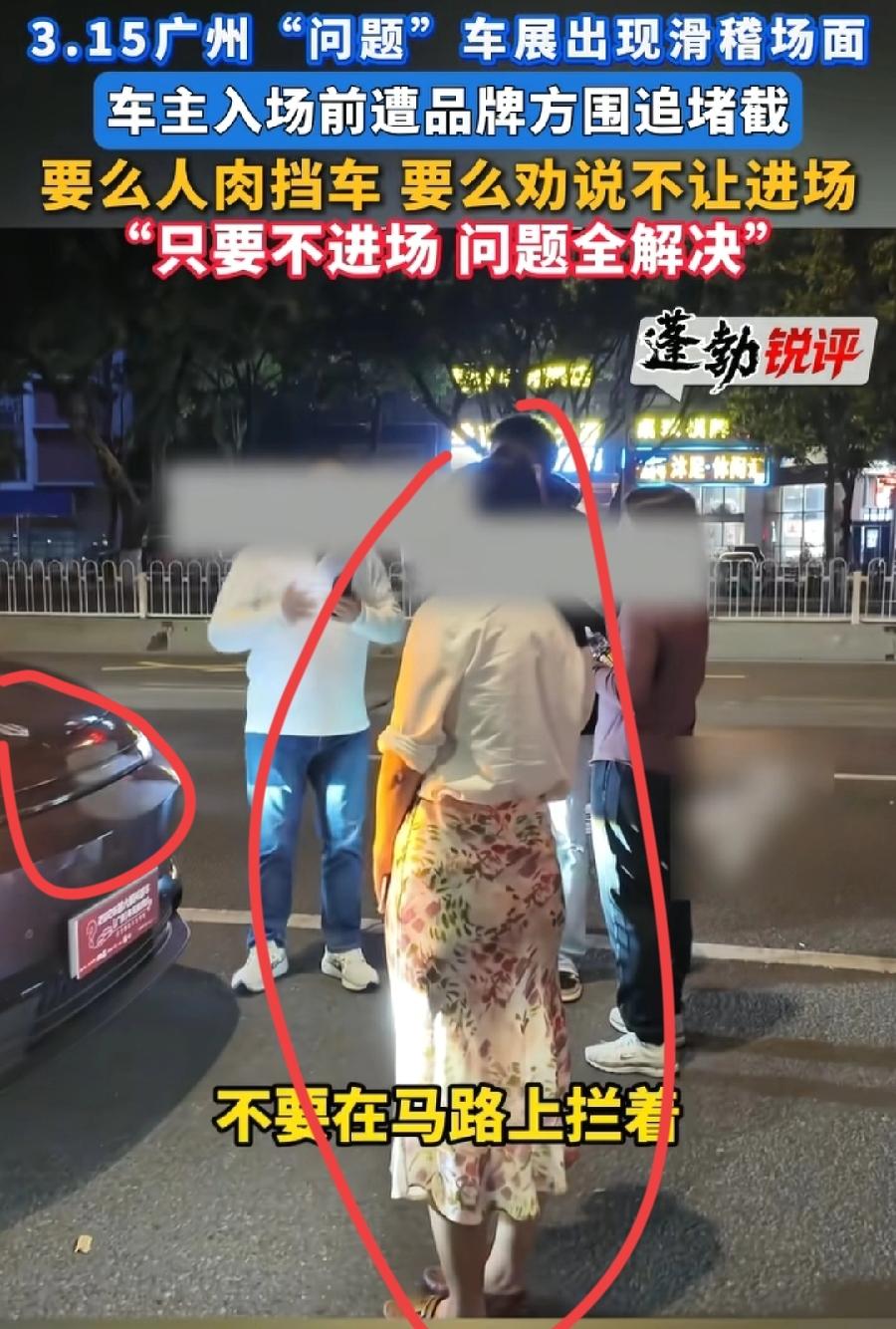 广州315问题车展,人肉挡车,这是哪家车企?工作人员这么牛?站在车头前,还是两名年轻女员工,就不怕车主脚打滑,或者碰到脑子、精神不太正常的车主,一脚油门下去非死即伤,为了工作不要命了?早有这个勇气,平时干什么去了,不给车主做好服务!这种挡车不让车主维权,是更损坏品牌形象吗!