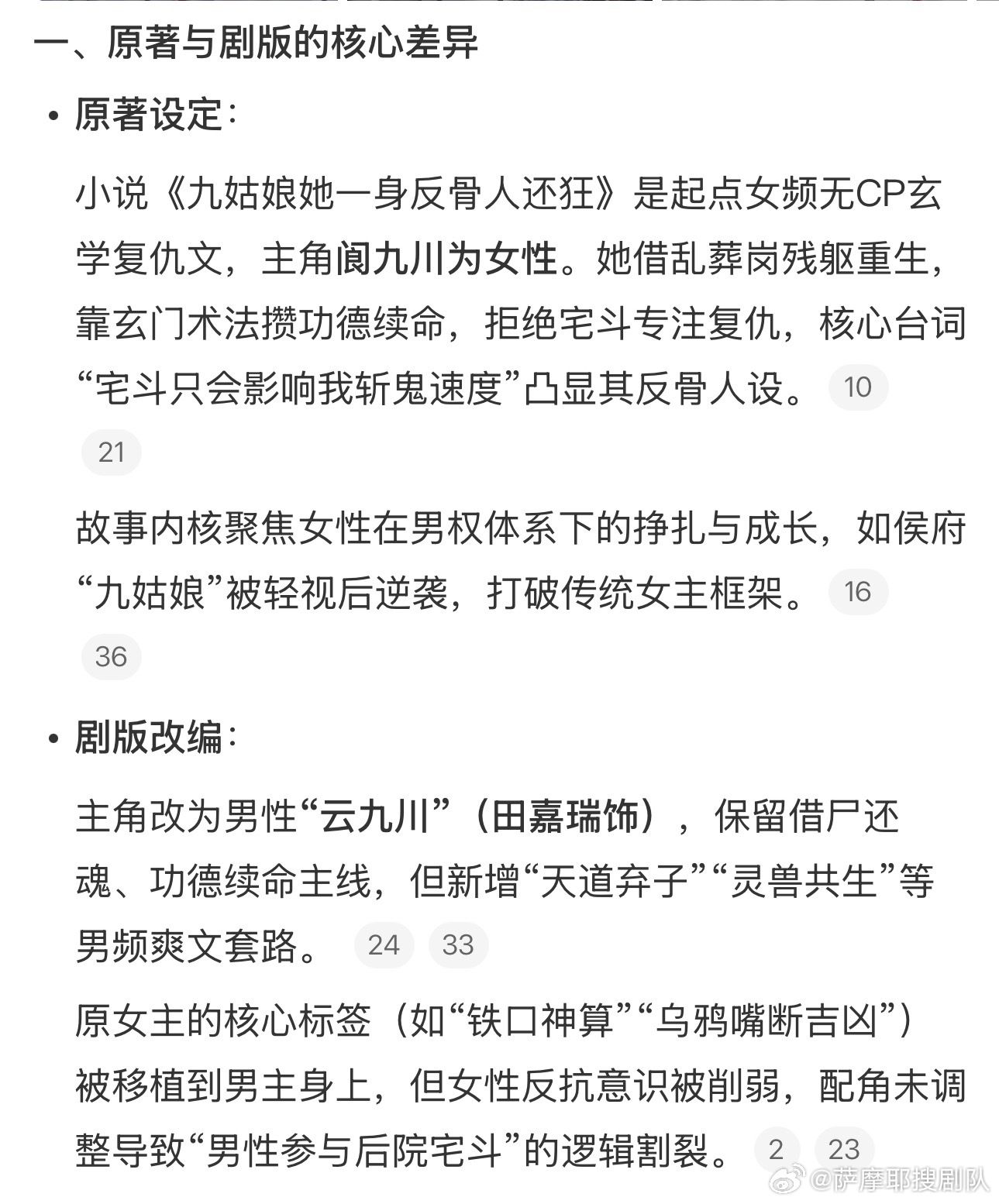 前提:起点女频《九姑娘她一身反骨还狂》是大女主无cp文,被改编为大男主,女主九姑娘性转成云九川(田嘉瑞出演)