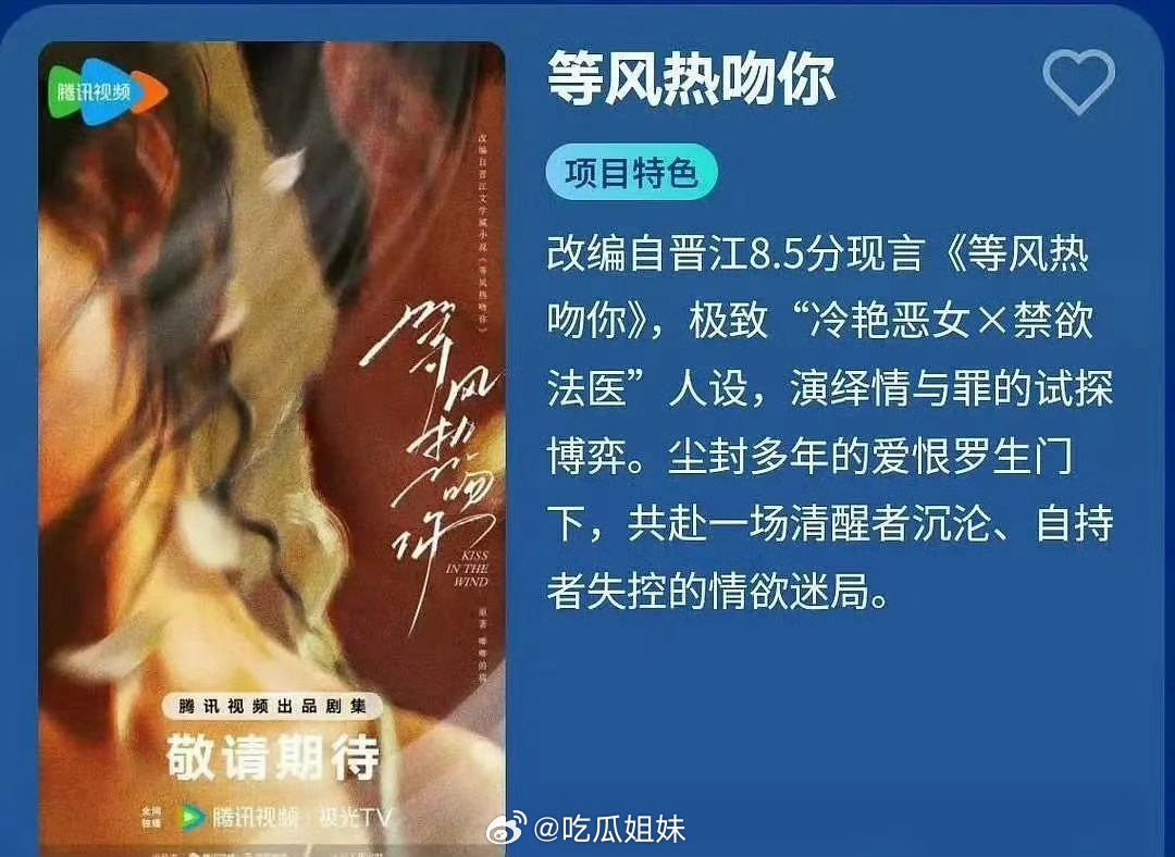 等风热吻你看到了网友的呼吁瓜主说等风热吻你看到了网友的呼吁,最近呼吁很高的选角是