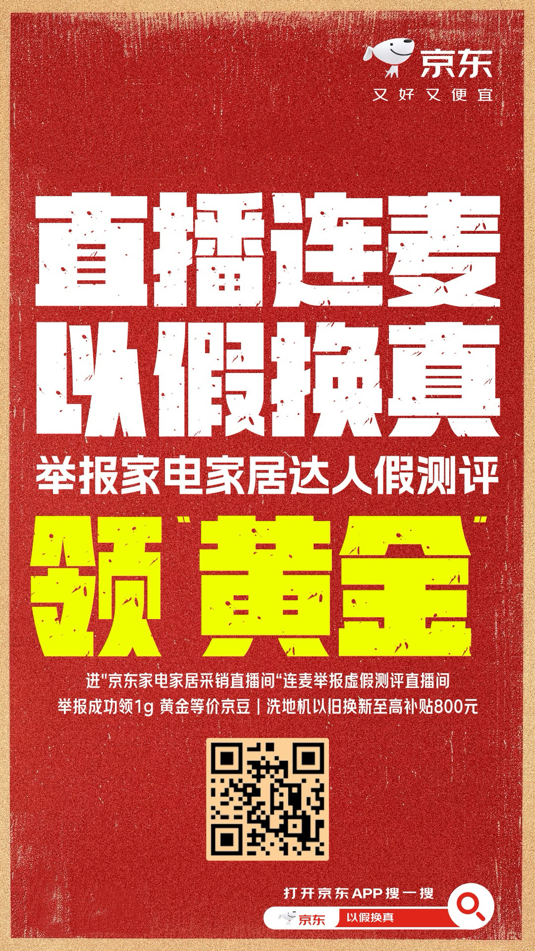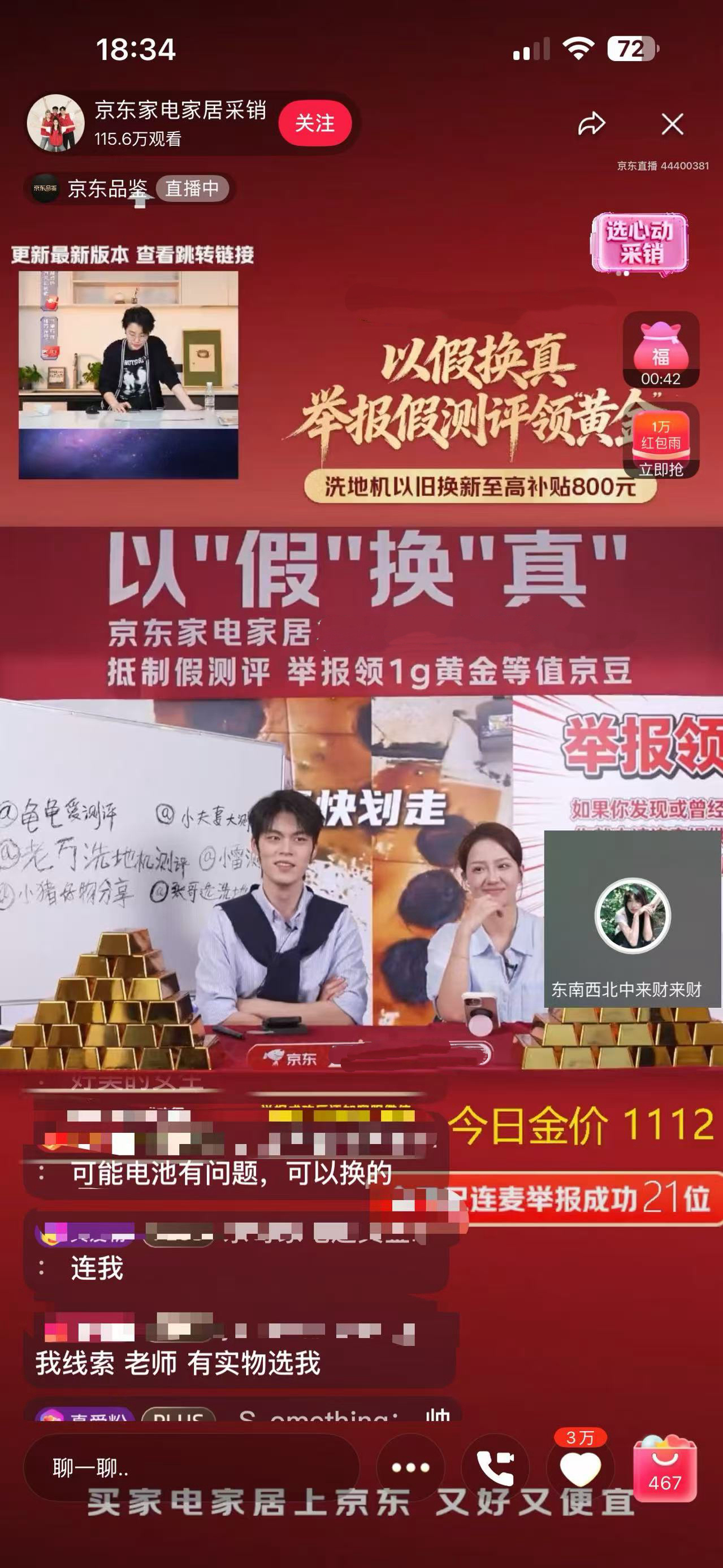 #京东邀你抵制假测评 举报领黄金# 京东这个直播活动真可以,直接直播跟消费者连麦,现场举报那些家电家具达人的假测评。我看了一会,都是真金白银消费后觉得不好用的,气不过来连麦。而且也不是为了节目效果,故意打假。像有些可能是正常损耗,例如电池老化问题,主播也会理性分析。评论区也都在出谋划策,参与度还是很积极的。京东这招真聪明,这种直播活动,会让老百姓觉得觉得平台是站在自己这边的。而且举报成功还有奖励,大家自己有啥家电想吐槽的,可以去看看。网页链接
