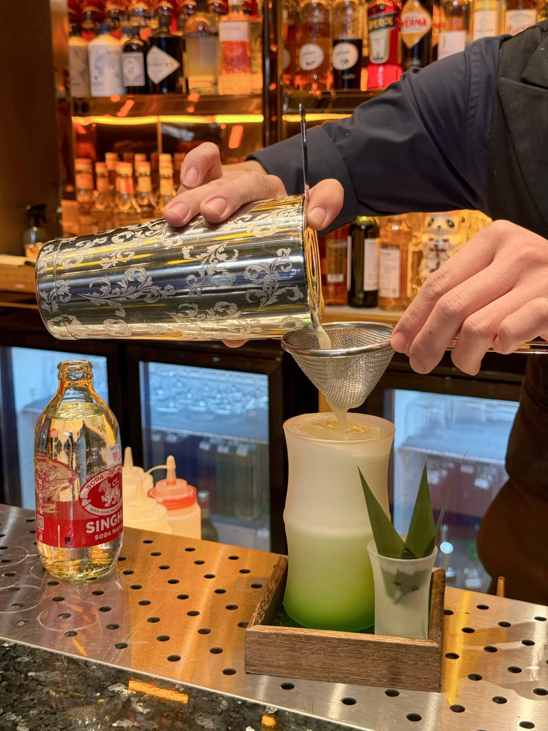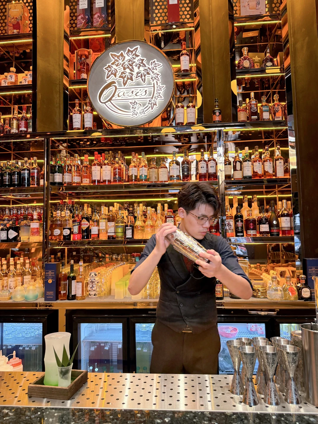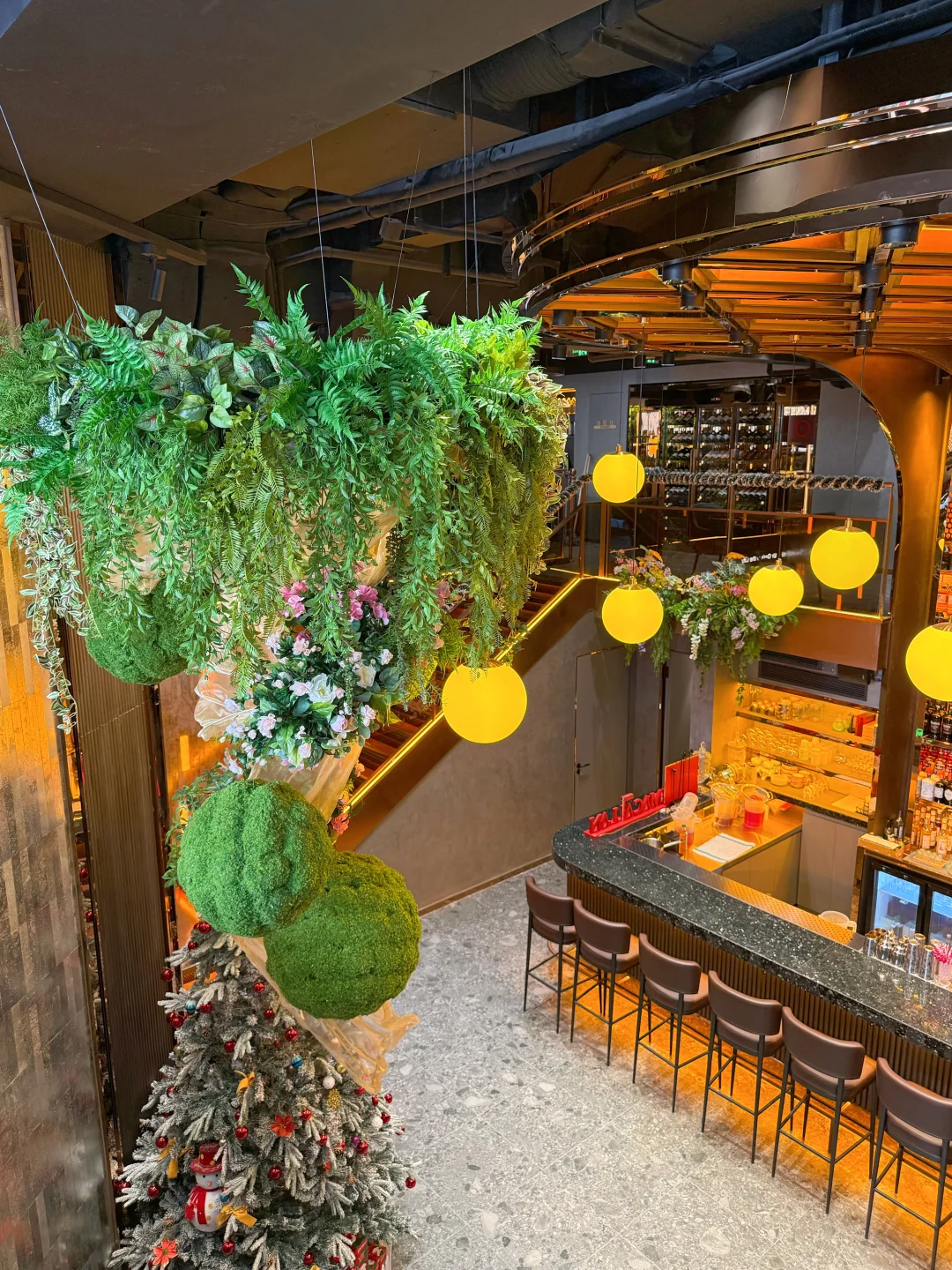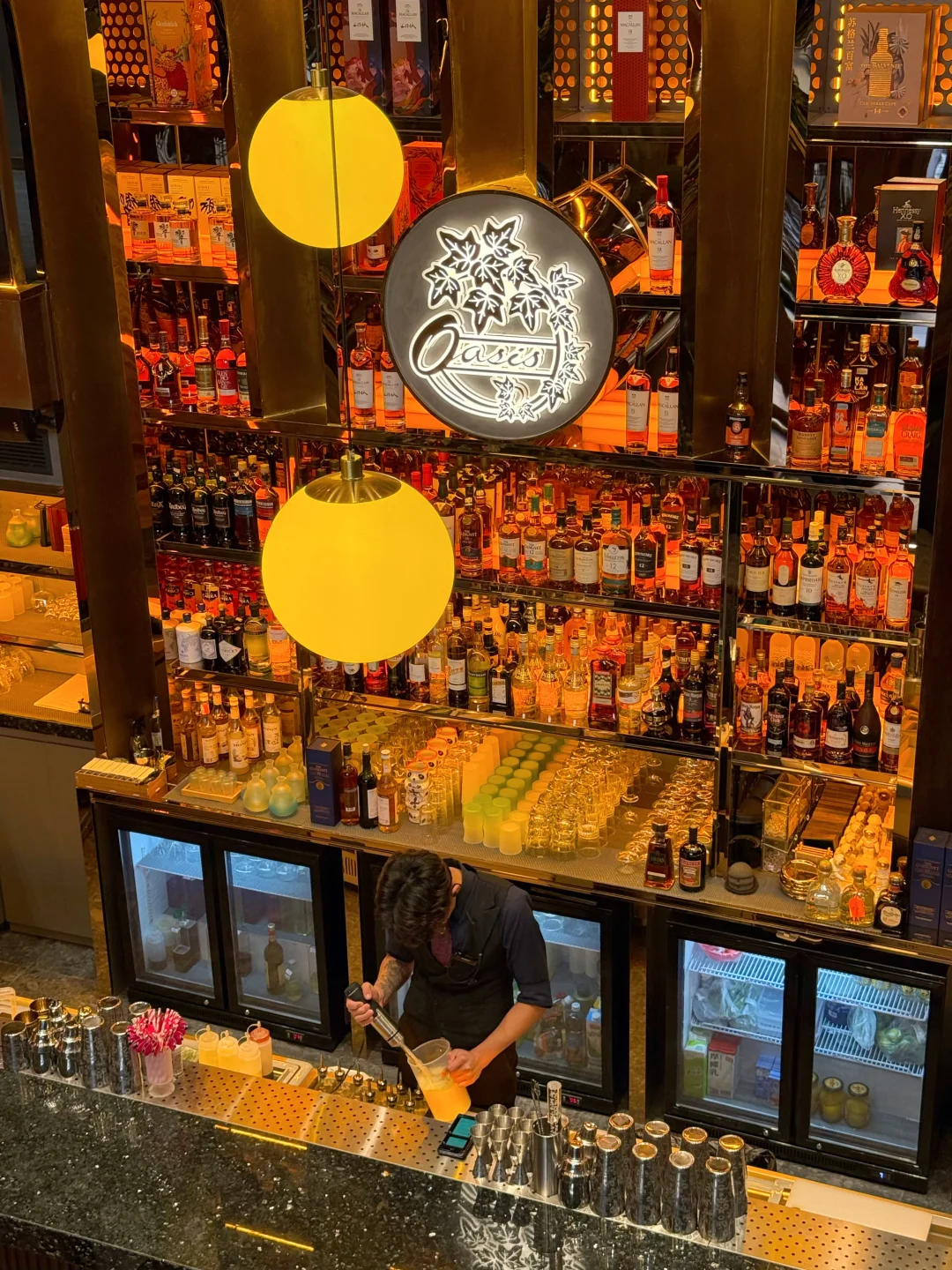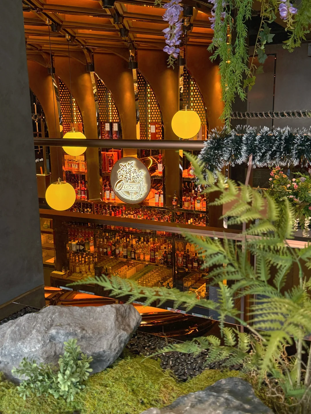 绿植、大理石吧台、摇曳的酒杯、暖光灯、轻爵士乐~凑在一起,仿佛一键切换进复古电影场景🎬