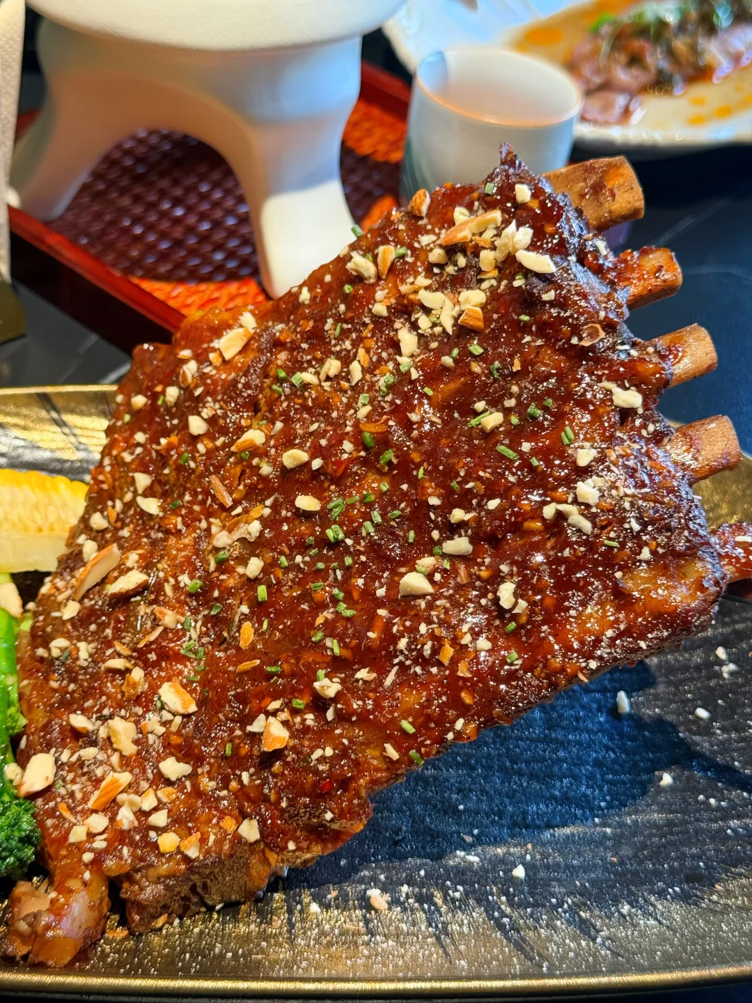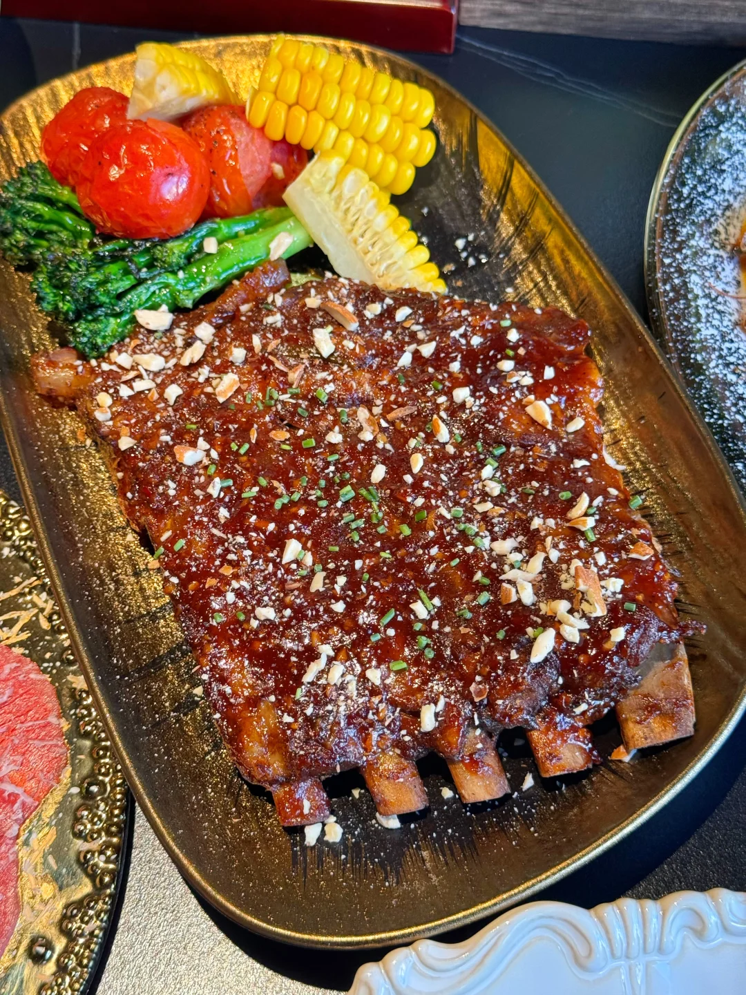 肋排烤得酥软入味,酱汁甜咸交织,轻轻一抿就脱骨!味道我真的好喜欢,啃完还想舔手指的那种~