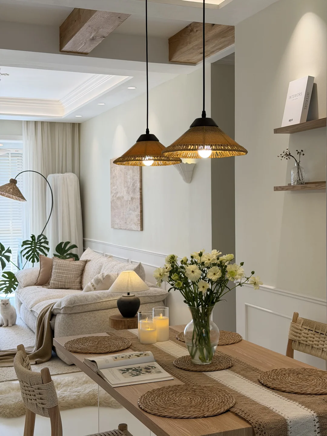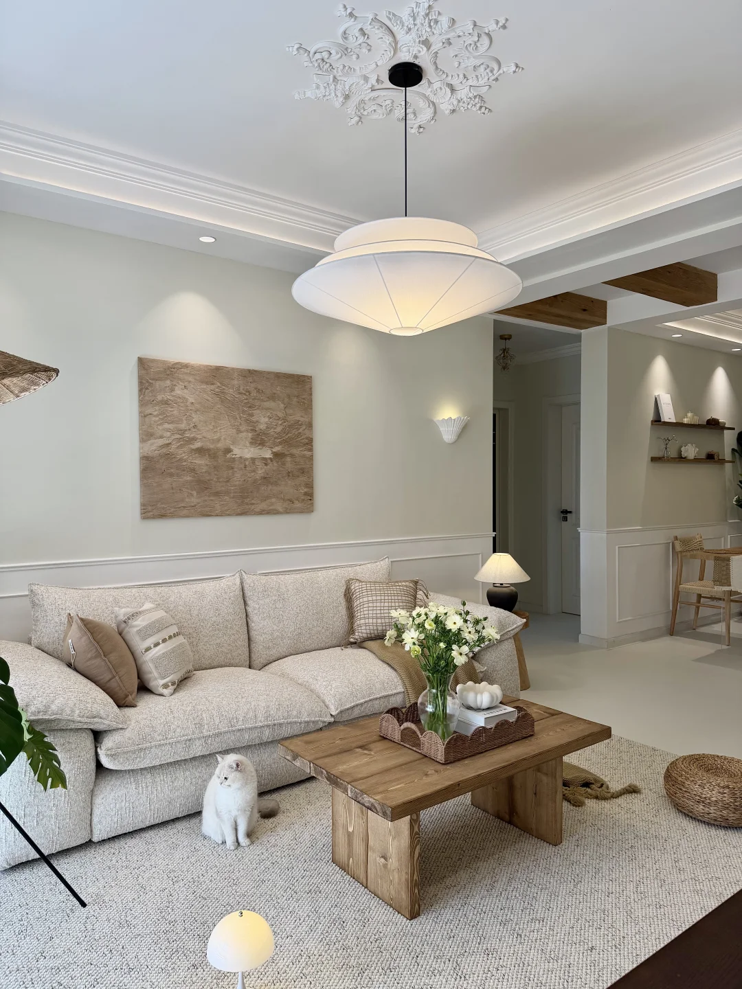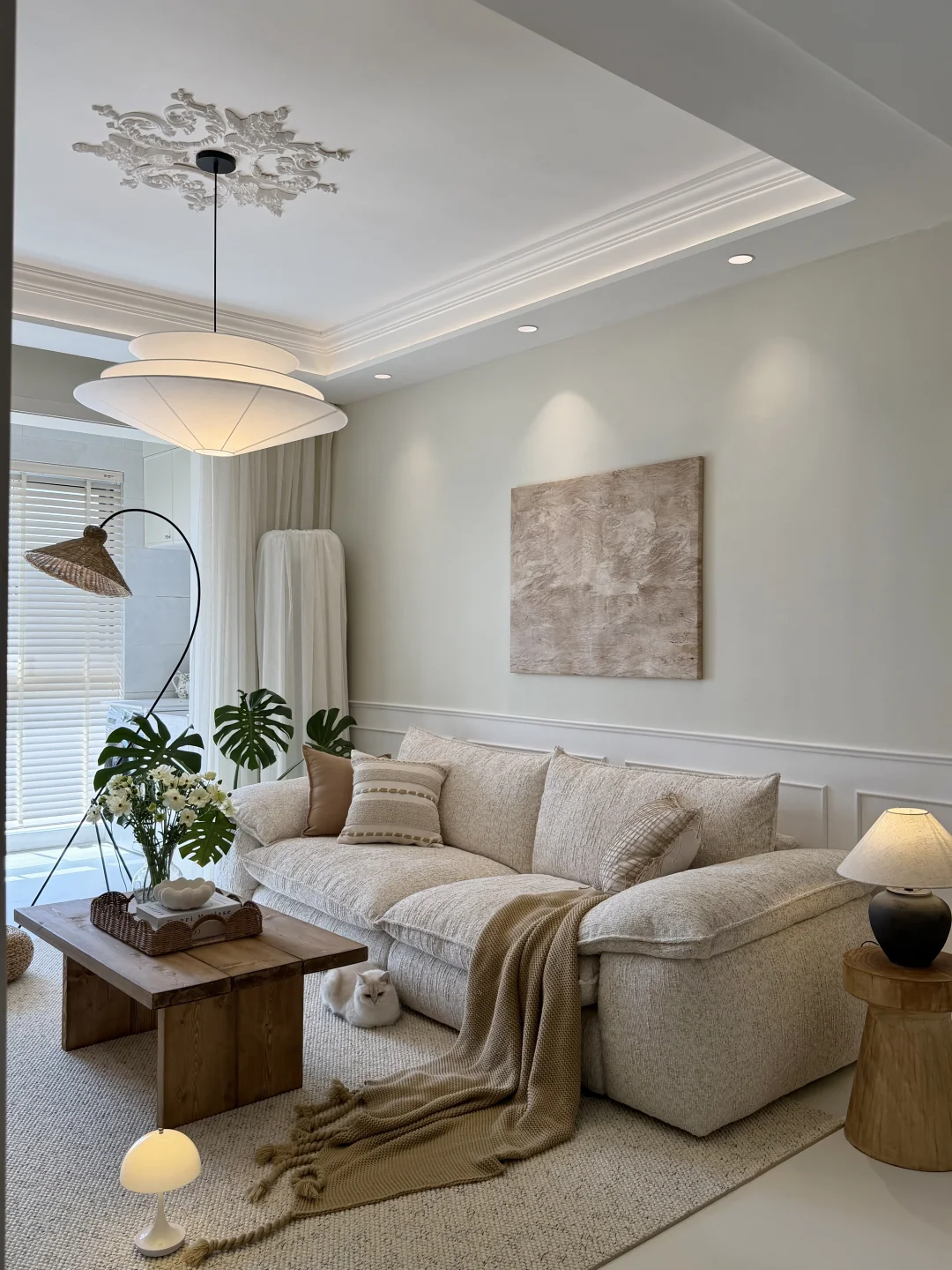 建面98,套内75平也能拿捏的法式自然风🌿 不用大户型也能拥有松弛感满满的家,温柔到想宅一辈子! 色调以奶白+米杏+原木色,低饱和暖调显大又温柔! 材质选用了实木、藤编、棉麻、肌理感织物,把自然感拉满~ 地毯搭配素色肌理款,不抢空间风头,小户型视觉更通透 再用绿植补充空间的呼吸感 让整个家看起来更有生机 用自然感呼应法式的松弛与优雅 真的是温柔又显大!!