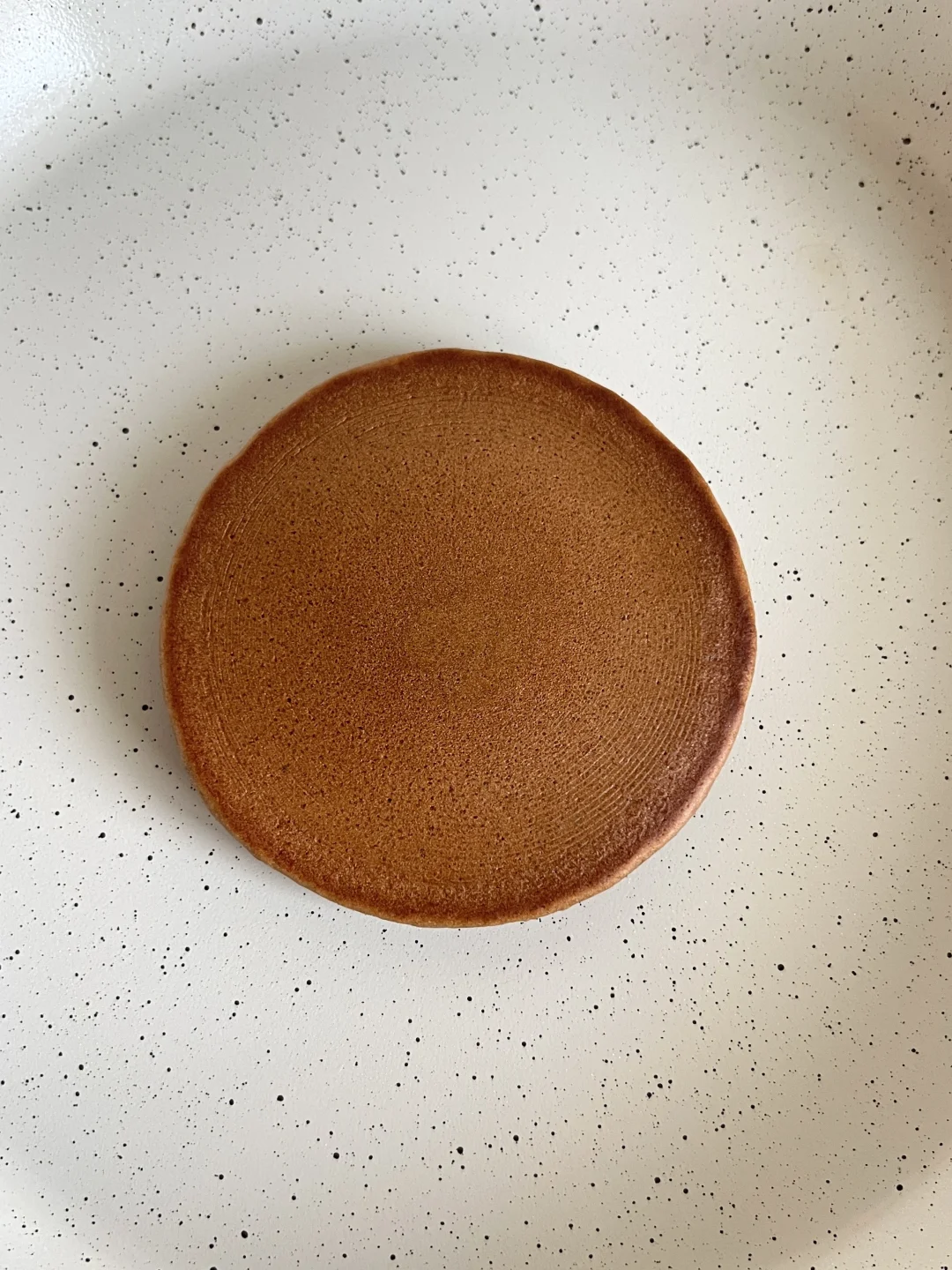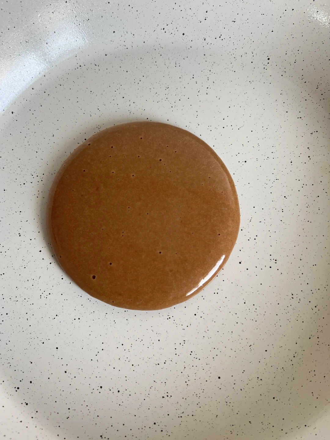 4️⃣ 饼皮出现密集泡泡,面糊表面开始干燥,就可以翻面了,松饼上色刚刚好,很均匀