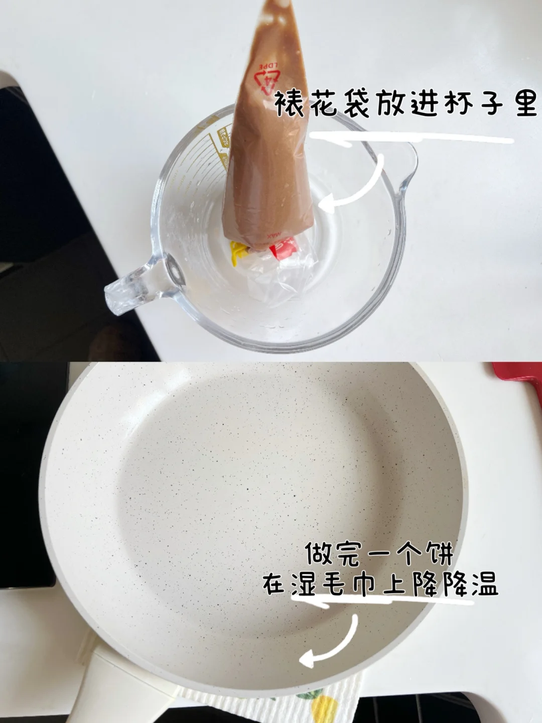 4️⃣装面糊的裱花袋倒放在杯子里,避免面糊流出