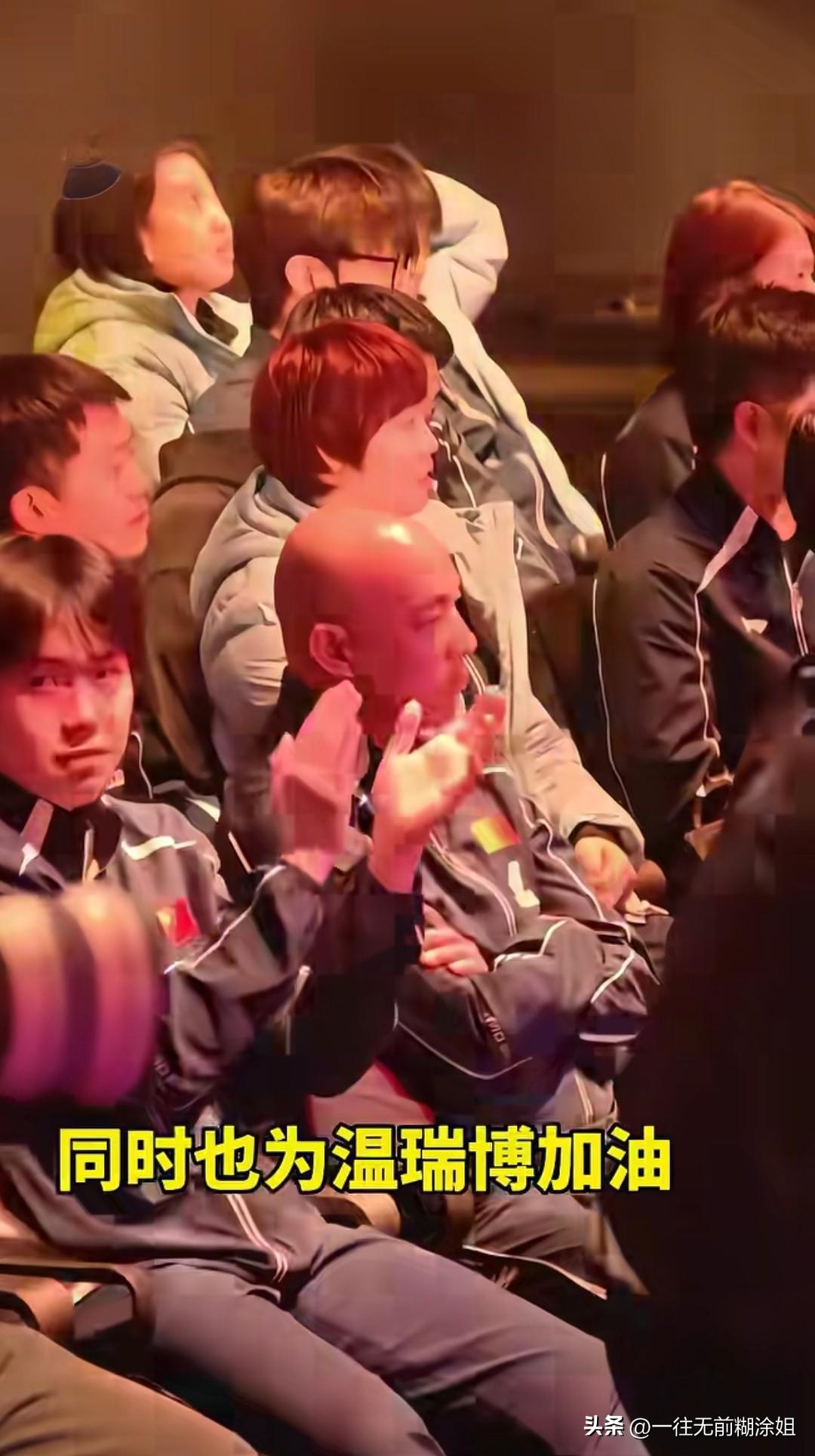没有比赛任务的大头本该放松心情休息一下,但他就是闲不住…… 这不大头今天来到现场观看温瑞博vs勒布伦决赛,还给自己下达了两个任: 1是为队友加油鼓劲,情绪价值拉满。 2是督查场内闪光灯,只要有人闪,他立马用手快速指向黑子,并且脸上的表情很严肃,好像在说:干嘛?关掉闪光灯! 这就是大头,负责的优势孩子! 你说,大格局的头头谁能不喜欢呢?