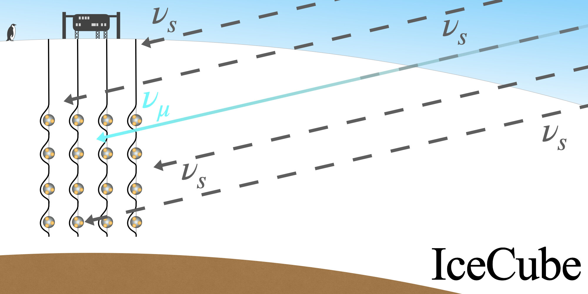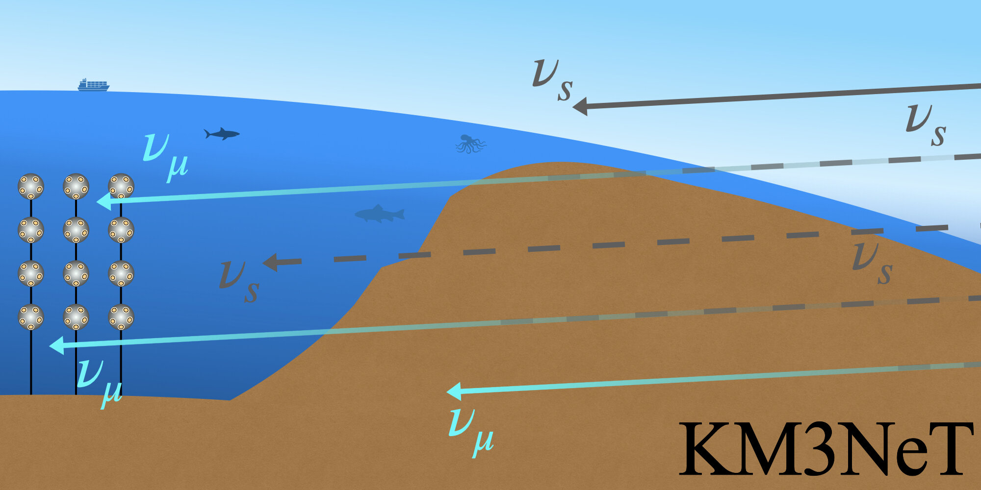 于是故事就讲通了:宇宙中某个短时间内突然爆发的极端天体事件,产生了一束主要由惰性中微子组成的粒子流,它们朝地球飞来。飞向KM3NeT的那些,穿过了150公里的岩石和海水,物质效应提供了足够的酝酿距离,大量惰性中微子转化成了普通中微子,被探测器捕获。飞向IceCube的那些,只穿过了14公里的冰,转化不充分,信号太弱,淹没在背景噪声里。