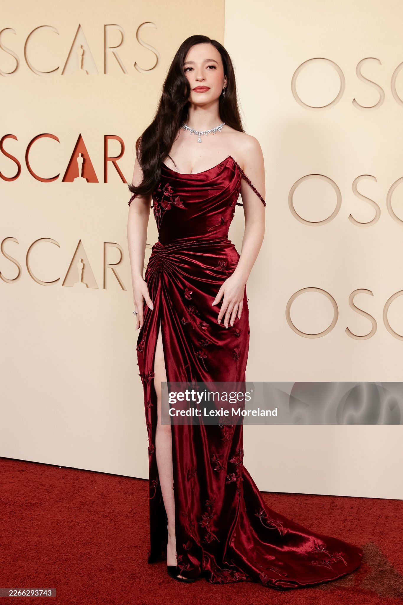 以一条 Dior by Jonathan Anderson 特别定制裙装搭配 Tiffany 珠宝出席 奥斯卡红毯 ,酒红丝绒点缀立体花卉刺绣 ,真红气养人 ,美得从容又大气 🥀