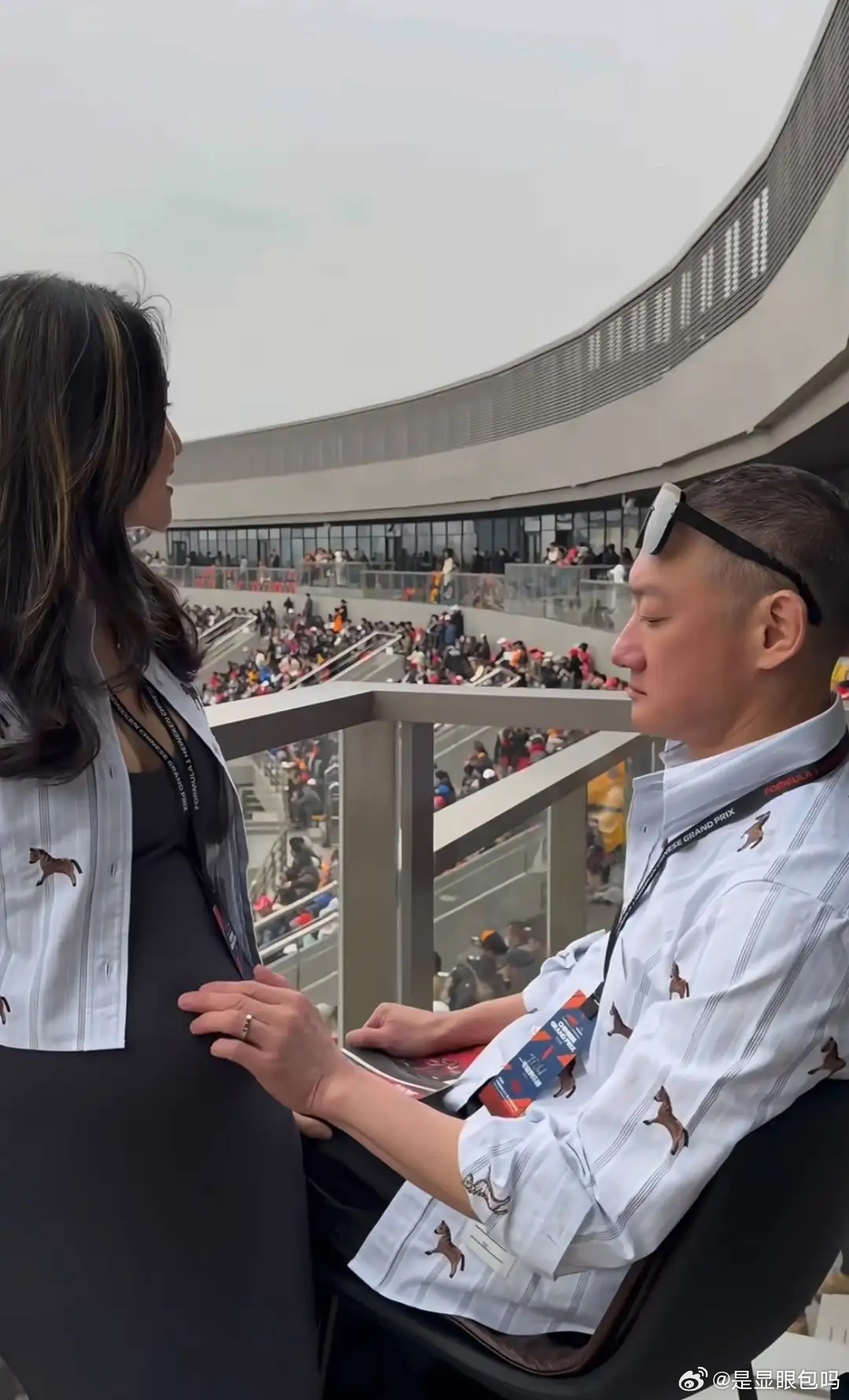 汪雨携老婆现身F1上海站,崔璨孕21周身材好,与吴千语施伯雄同框!