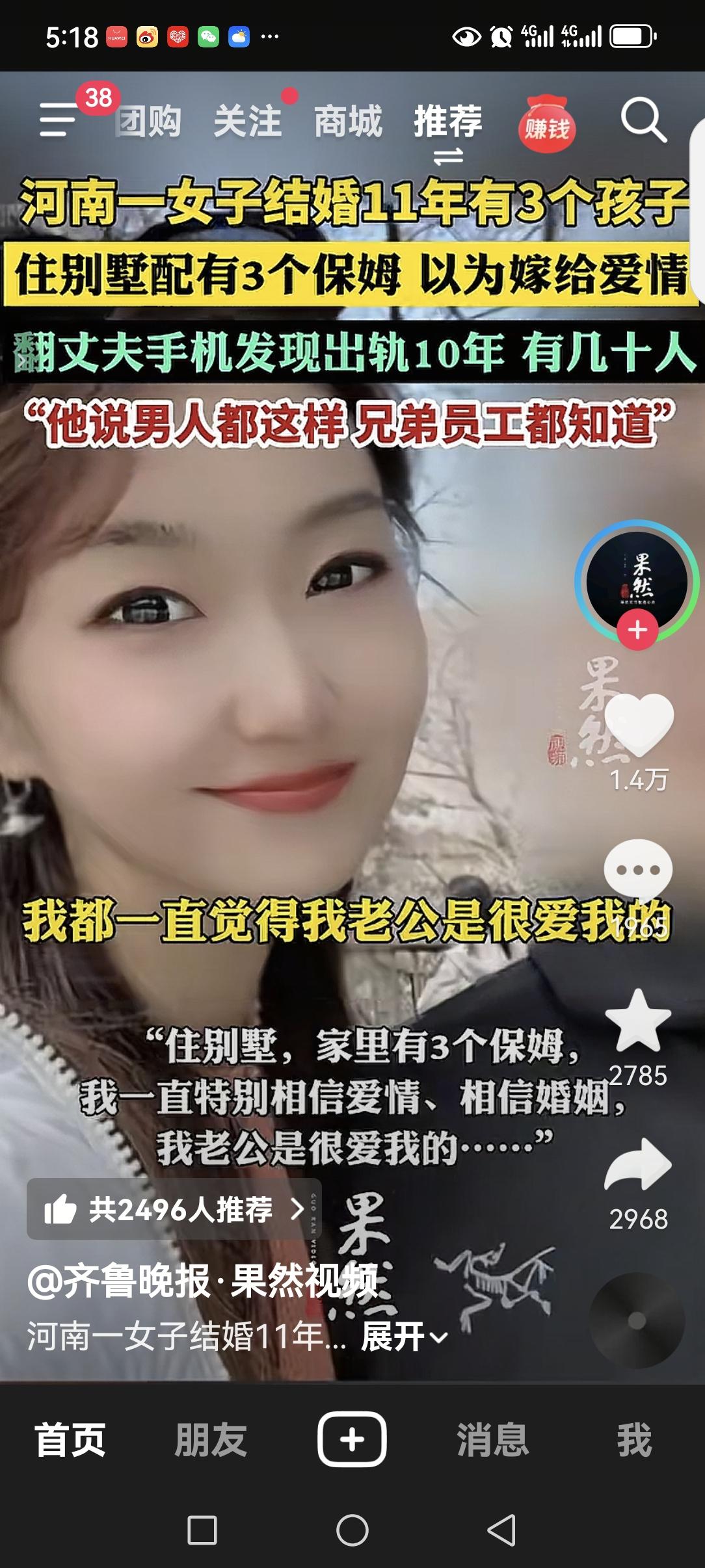 结婚十一年生了三个孩子,住着别墅,老公给配了三个保姆,这种生活能让多少女人羡慕嫉妒恨呀! 郑州的杨女士就是这样一位豪门阔太太! 她原以为自己婚姻幸福,嫁给了爱情。直到翻看自己老公的手机才知道,老公出轨了十几年,有几十个人。 这让杨女士如遭雷击,开始和丈夫哭闹,结果换来了丈夫的家暴。还振振有词的告诉她,男人都这样,他的兄弟和员工都知道这事。 这把杨女士逼到崩溃边缘,对自己老公失望透顶,于是她就提出了离婚。 我觉得杨女士为了孩子,完全可以选择忍气吞声。 像他老公这么有钱的,离婚了马上就有人扑过来。谁敢保证他婚后不生孩子呢?到时候再婚,就会多几个人分割他老公的财产是真的! 如果杨女士有她老公是出轨证据,离婚最少也能分一半财产,孩子的抚养费他也要出,杨女士以后也能过的衣食无忧,而且也不用为这种男人生气了。这也未尝不是一种好的选择,毕竟人生苦短! 大家觉得杨女士到底该不该离婚呢?