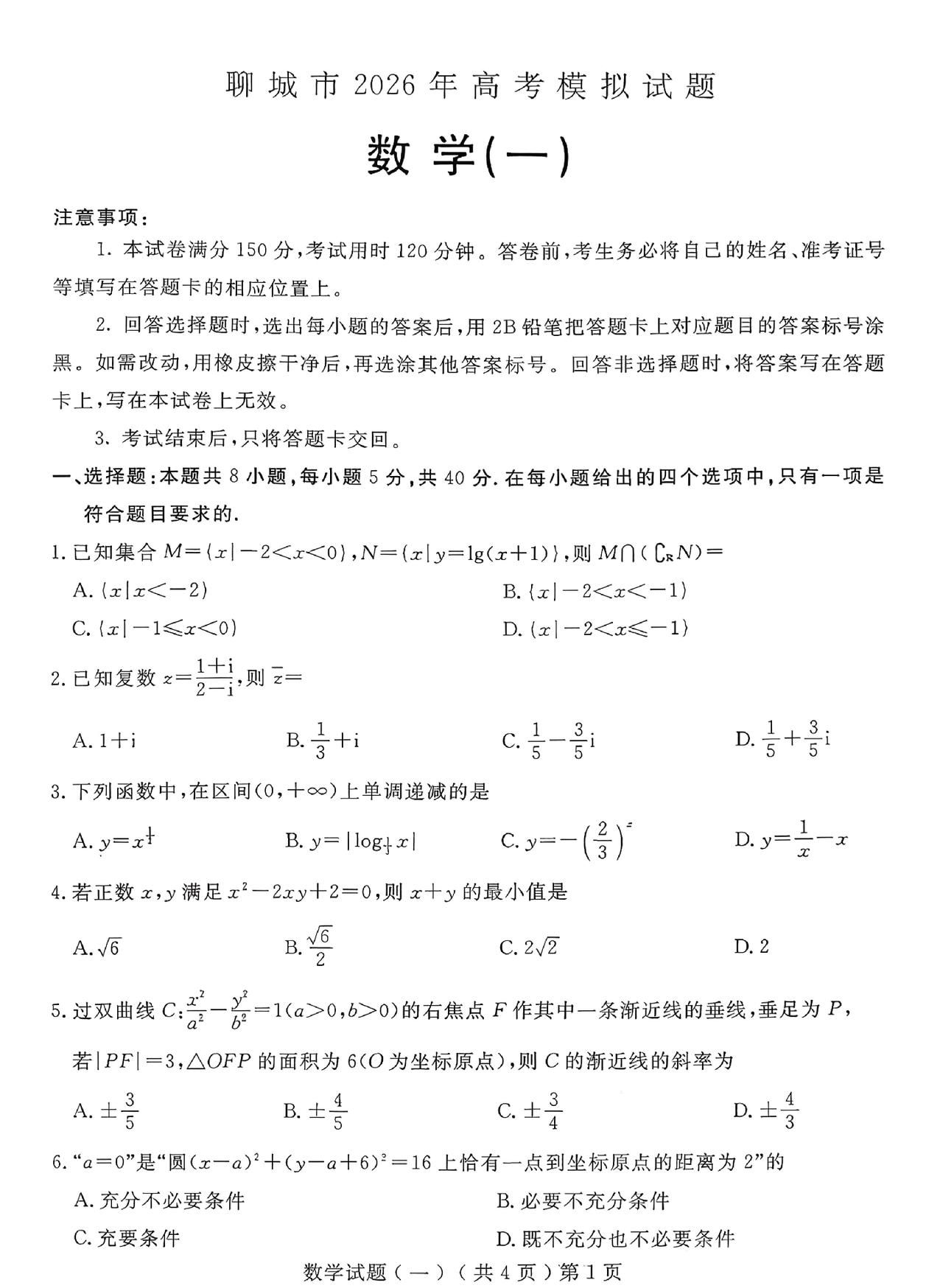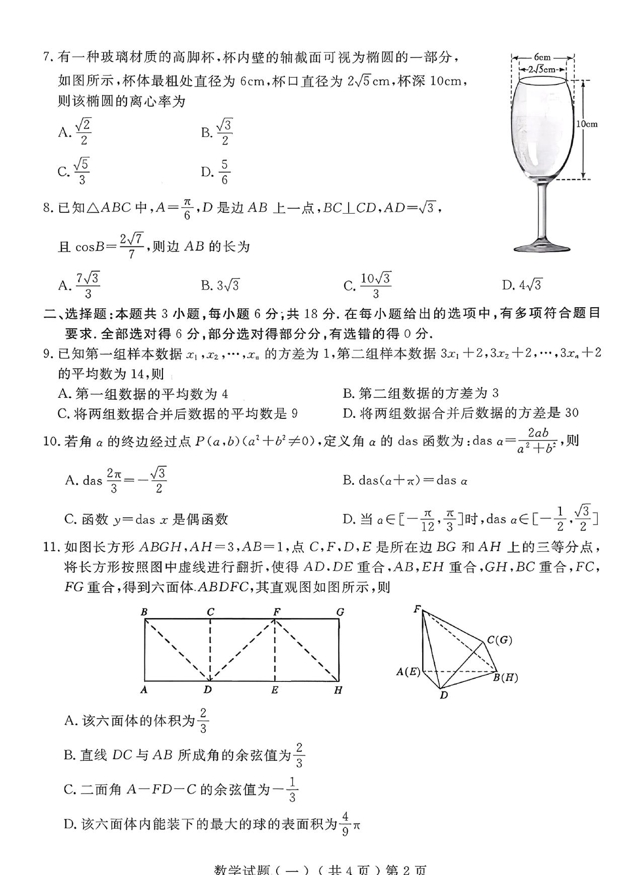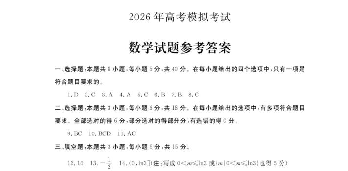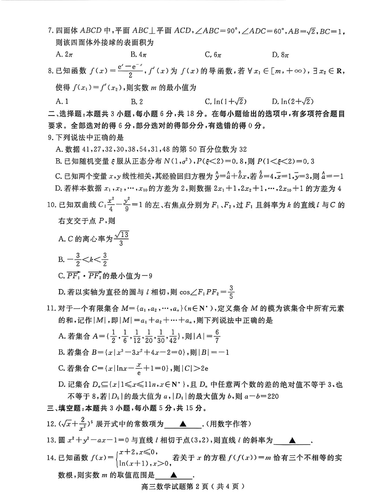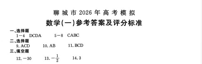 山东省济宁、聊城市2023级高三一轮验收考试数学试题单选题多选题填空题及其答案。