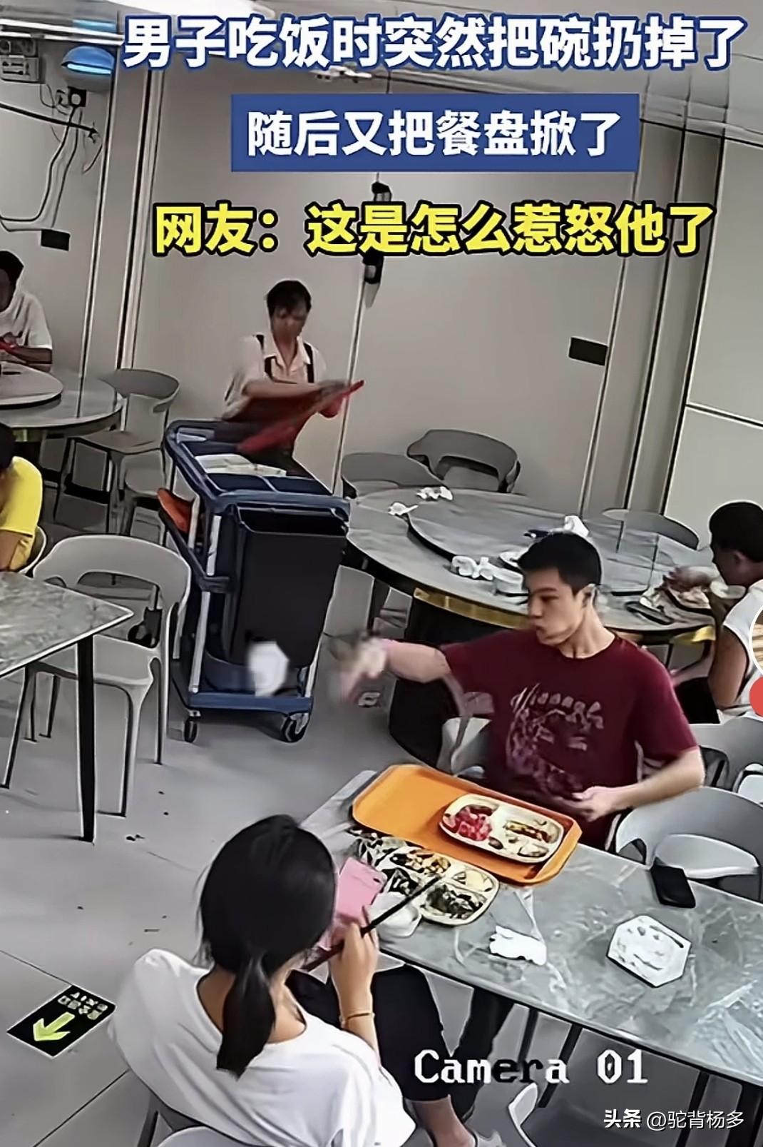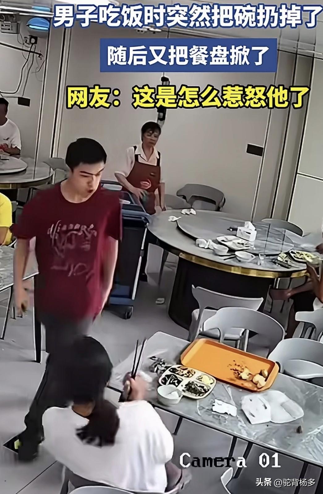 男子为何摔碗掀饭盘呢?有人说是男子和女朋友一起吃饭,女朋友只顾玩手机不吃饭,把男友凉一边了,男友气不过,嫌把自己不当一回事才有过急行动。 到底为何,也许只有当事人知道。