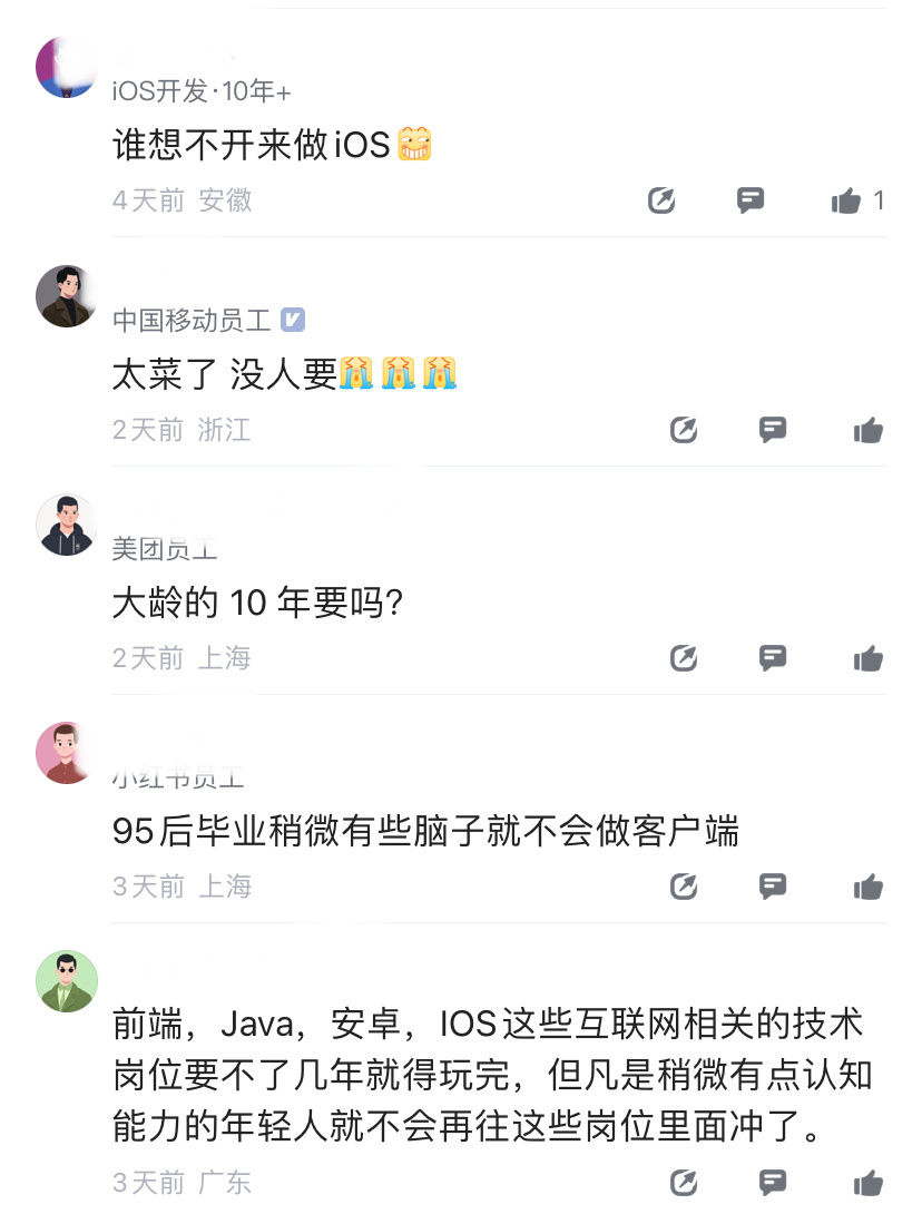 但也有人意识到,这个行业快消失了,17年开始就没什么人入行了,现在干客户端的基本都是老登。而且AI又这么猛,不会过两年真要绝迹了吧?