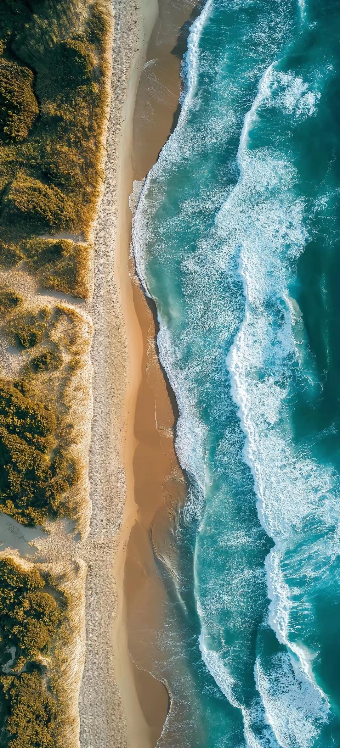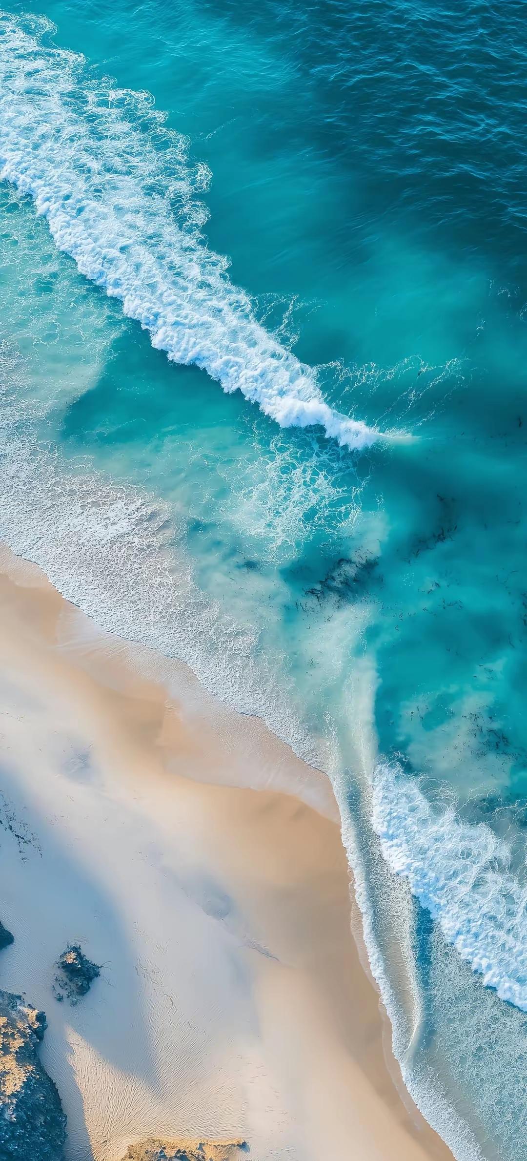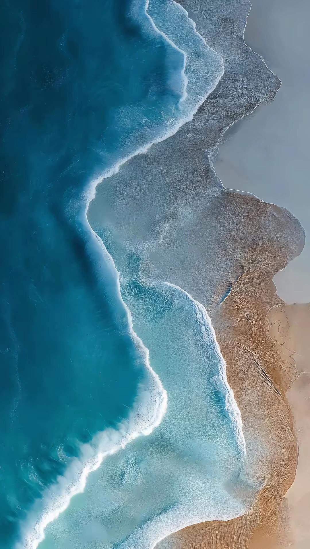 大海壁纸~海与沙的温柔相拥,蓝与白的纯粹碰撞。海浪轻吻沙滩,勾勒出自然的浪漫曲线