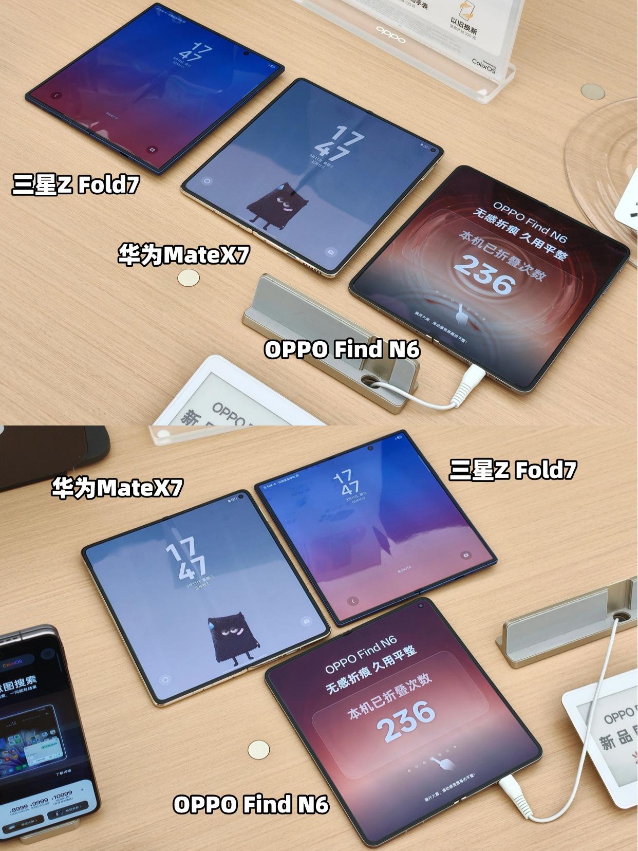 2026年的折叠屏手机折痕表现怎么样了? 不废话,我们直接到OPPO门店看看Find N6真机有没有折痕,现在门店还搞了折叠游戏,我试的这一台已经折叠了236次, 但折痕还是几乎看不到,摸上去很平整,几乎感觉不到折痕。 - 和折叠屏老大哥华为和三星放一块看,OPPO真不差呀!看来OPPO真被低估了,怀疑OPPO技术的可以去门店摸摸。 - 据说OPPO Find N6这个钛合金天穹铰链采用芯片级高分子3D打印工艺,由OPPO和先导智能、铂力特、安费诺飞凤和三星显示一起研发的,苹果折叠屏甚至也照着OPPO在用这条供应链!当然也不用担心用久了不平整,据说还通过了莱茵60万次折叠测试,久用依旧平整, - 除了折痕控制厉害外,OPPO Find N6还有折叠里唯一哈苏2亿超清四摄,直板旗舰水平,AI手写笔还被曝光了,搭配这么平整的大屏,大屏使用效率估计会提升不少,期待有什么好玩的AI功能,感兴趣的宝子可以在3月17日蹲一蹲。 - 折叠屏 苹果折叠屏 iphone 华为matex7 三星Fold7 OPPOFindN6