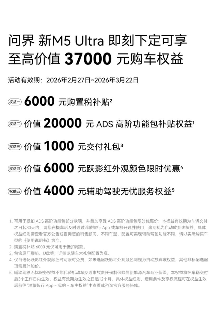上班族通勤福音!问界新M5 Ultra省心又经济 我是上班族,每天上下班要跑几十公里,选车就图个省心、省油、好开,看16W+车主都推荐问界新M5 Ultra,我就入手了,开了5个月,彻底告别了通勤焦虑。315讲究的就是消费权益,对我们上班族来说,选一辆靠谱省心的通勤车,就是最实在的好处,这款车正好合我心意。华为乾崑智驾ADS 4在早晚高峰太实用了,能自动跟车、避让加塞,不用我全程紧绷神经,下班回家也不会觉得累。续航很扎实,平时通勤用电,一周充一次电就够了,跑长途用油也不焦虑,又经济又实用。座椅坐着舒服,久坐也不腰酸,隔音也不错,上下班路上能安安静静休息、听音乐。外观简单大气,停车也方便,内饰没异味,品质有权威认证,从没出过小毛病。现在购车能享至高37000元购车权益,上班族选它准没错。