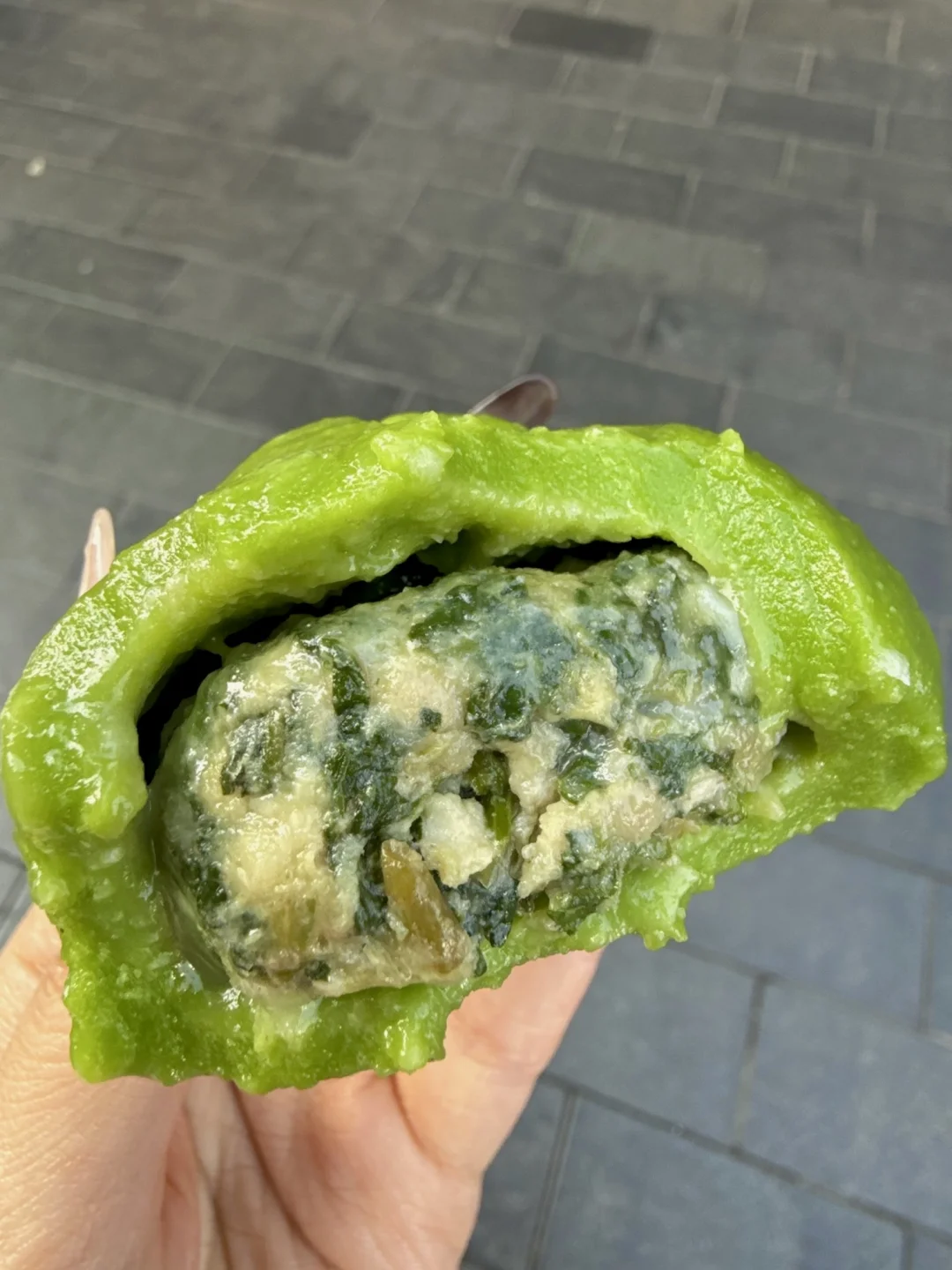 跟着上海阿爷阿奶吃过一次就爱上了!! 新出的土豆泥培根青团好nb!! 绵绵土豆泥very好吃!!吃商好高!! 好喜欢春三鲜青团,荠菜嫩! 粢毛青团、马兰头、豆沙、蛋黄肉松… 还有龙井茉莉条头糕,清新!!