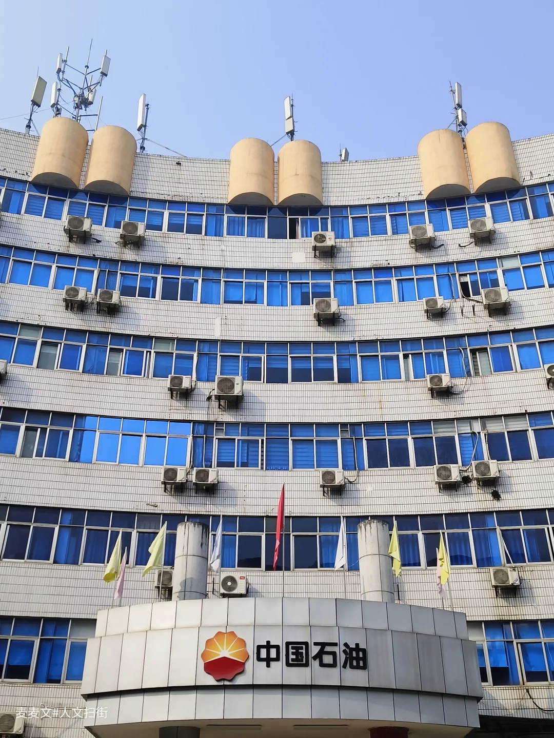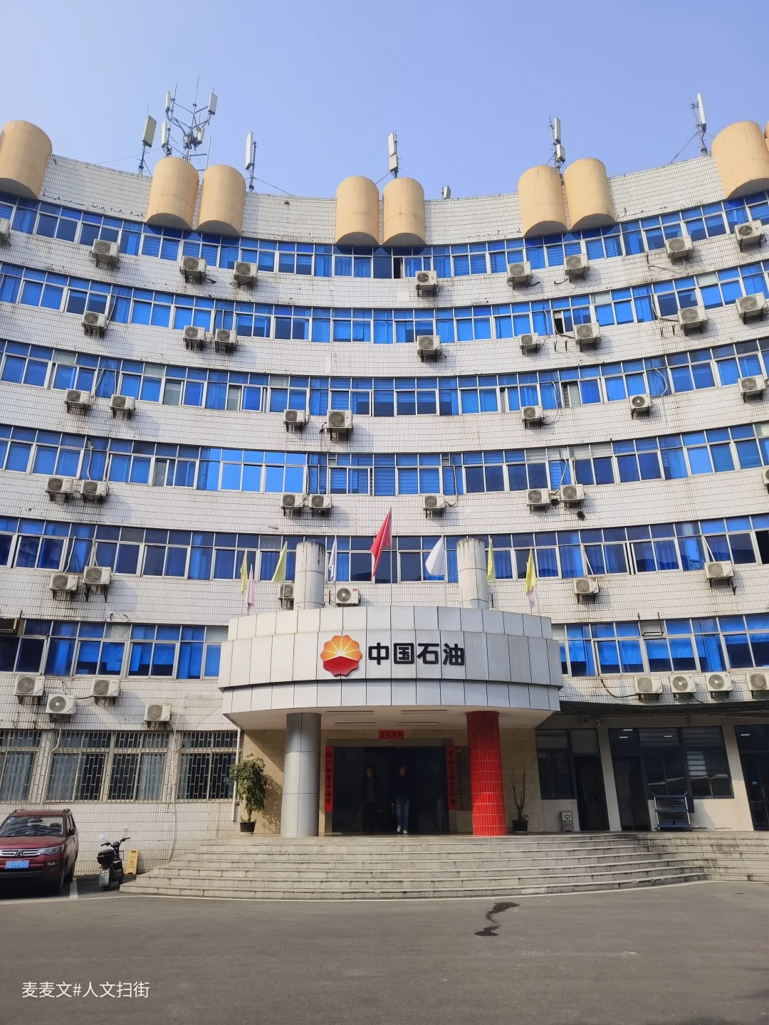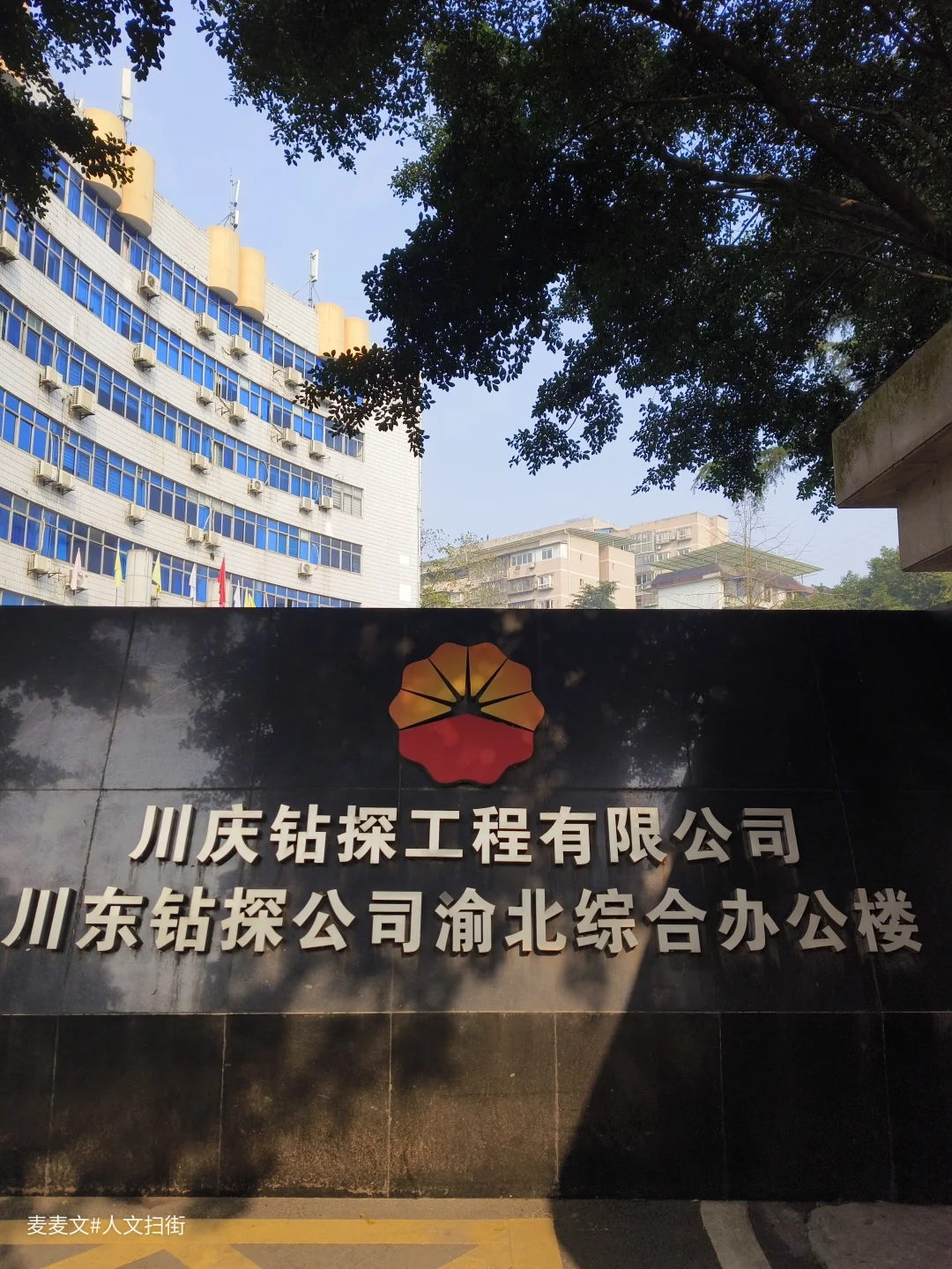 这里的综合办公楼是最醒目的地标,弧形的白色瓷砖外墙、成排的蓝色玻璃窗,还有楼顶错落的圆柱形装饰,带着千禧年建筑特有的厚重与规整。中国石油的标志在门楣上格外醒目,仿佛在诉说着这里作为川东油气勘探核心阵地的过往,见证了从石油沟气矿到现代天然气开发的百年变迁。