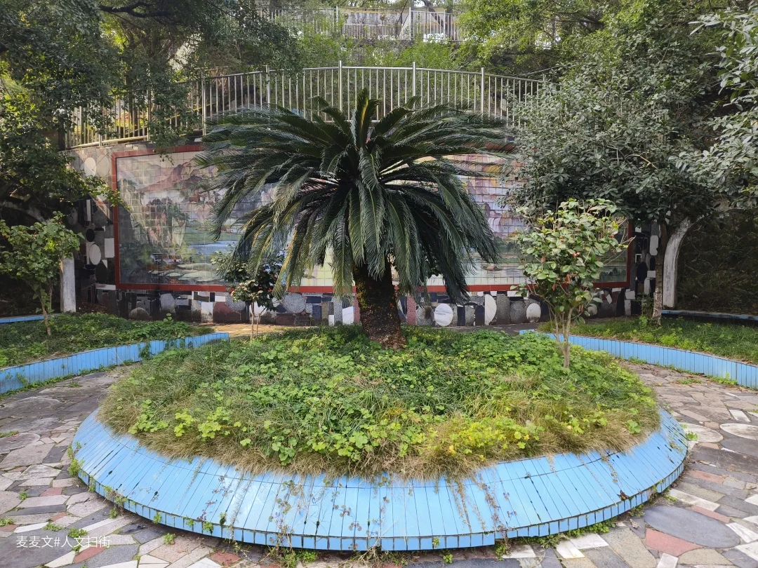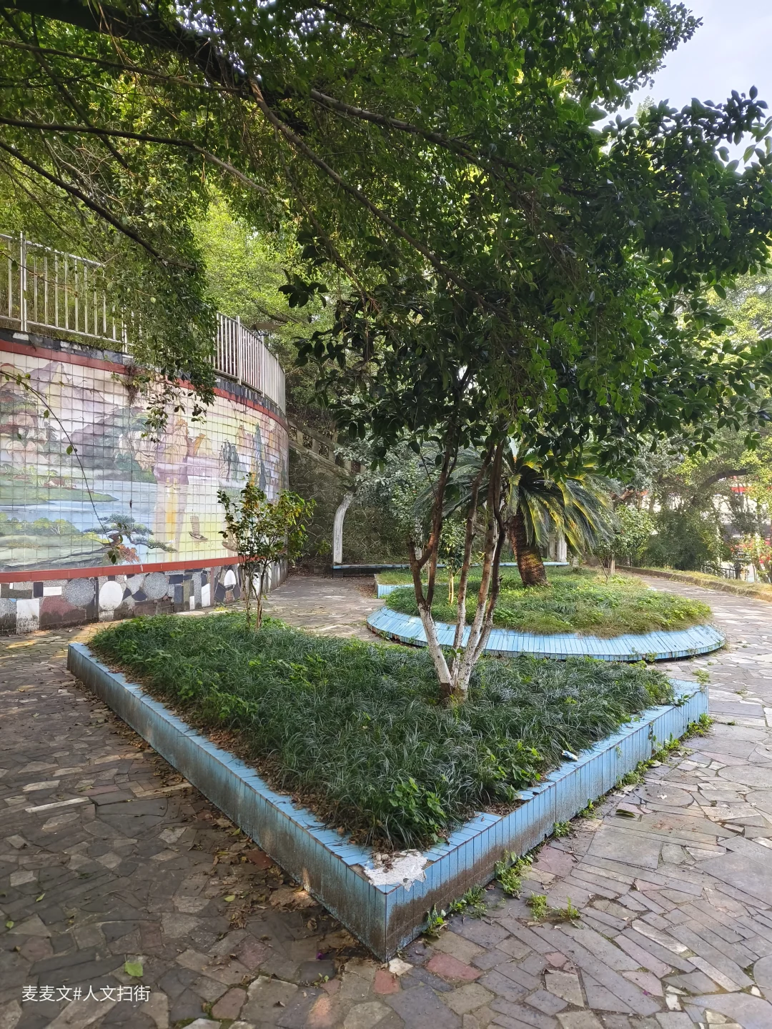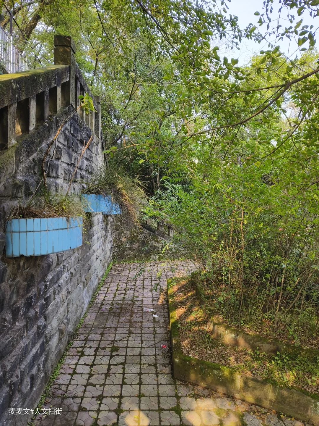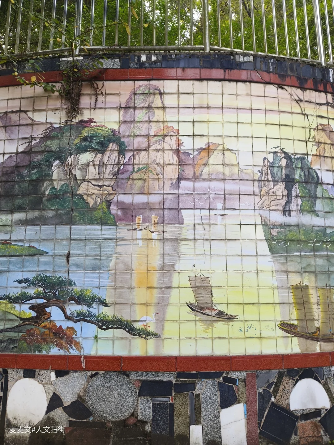 走进这个90年代的石油家属院,一面弧形瓷砖壁画静静倚在坡上,青绿山水、红檐小屋、江上帆影晕染在瓷片间,是老石油人对生活的浪漫注解。斑驳的石砌墙基、爬满藤蔓的砖面,和远处办公楼的空调外机、通信天线交织在一起,工业的硬朗与生活的温柔在此刻完美融合。