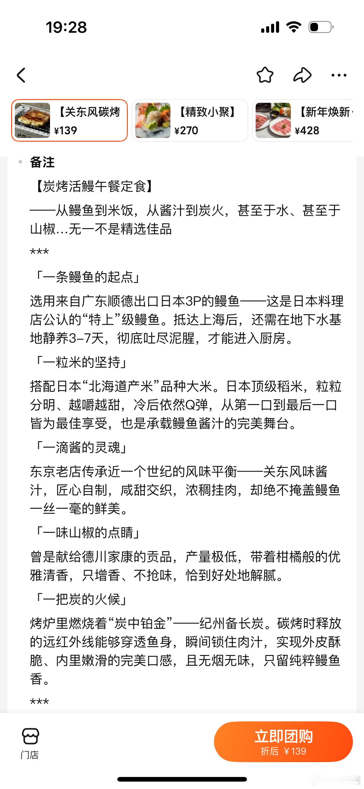 四种做法难分仲伯。建议约多几个朋友一起去吃。中午的套餐有特别优惠的团购价。因为是活sha鳗鱼,中午匆忙的上班族、或者赶路的旅客也请多留出二十分钟时间,好好享用美味。🙇🏻♀️ 上海·阿纳迪酒店-竹善日本料理